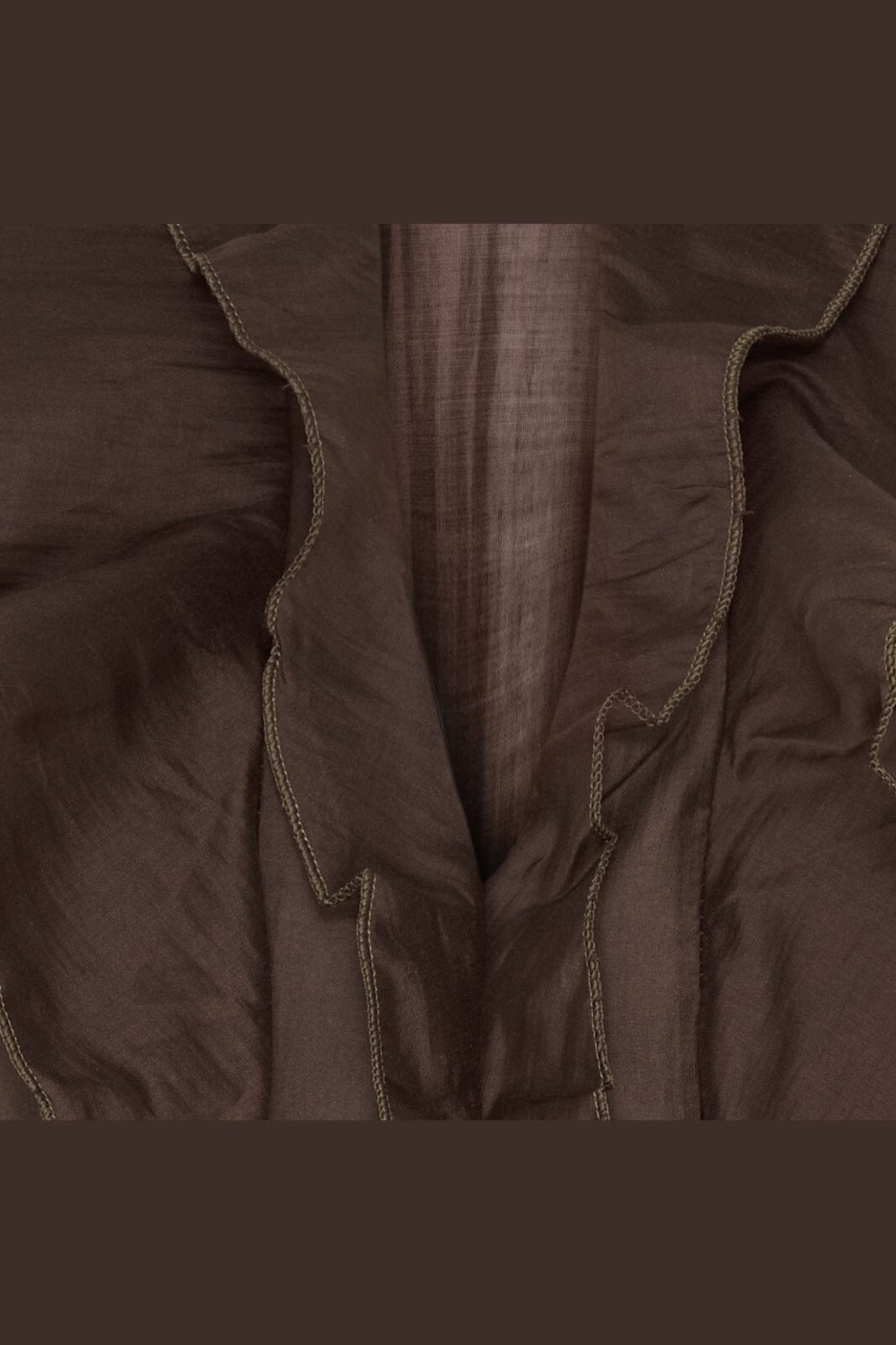 Brązowa koszula od Marta Du Chateau z detalami falbanek wzdłuż dekoltu V. Koszula ma długie rękawy i dekoracyjne szwy, które nadają jej kobiecy wyraz.