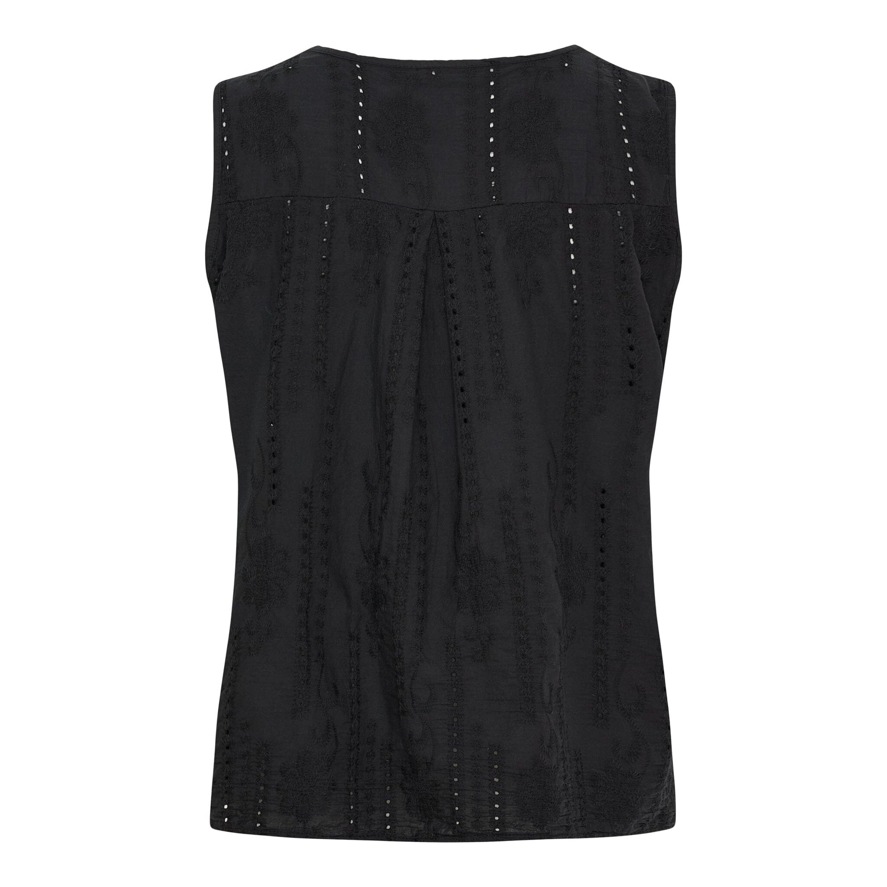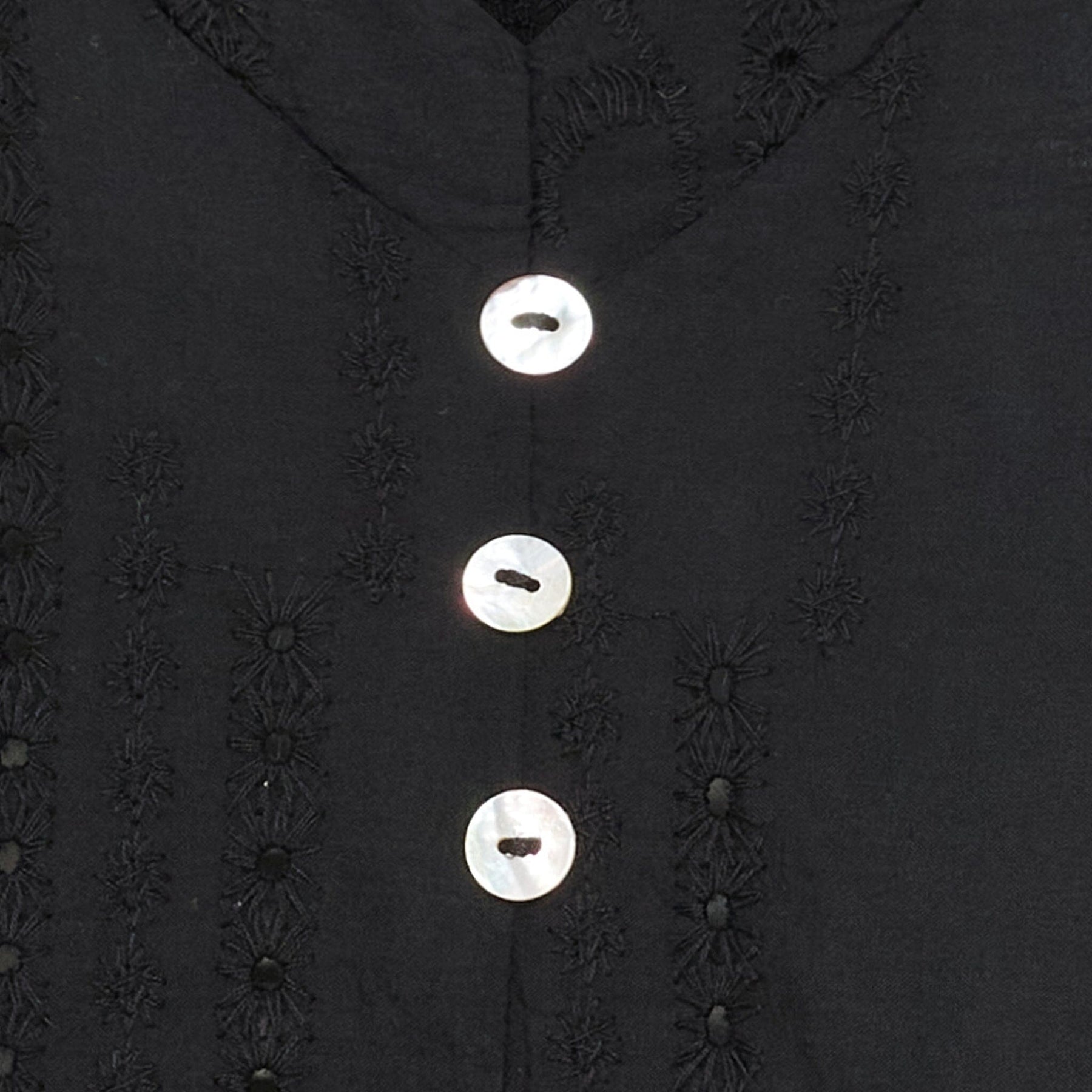 Czarny bezrękawnik od Marta Du Chateau z dekoltem w kształcie V i haftowanymi detalami. Top ma trzy perłowe guziki z przodu i luźny krój, który zapewnia dużą swobodę ruchów.