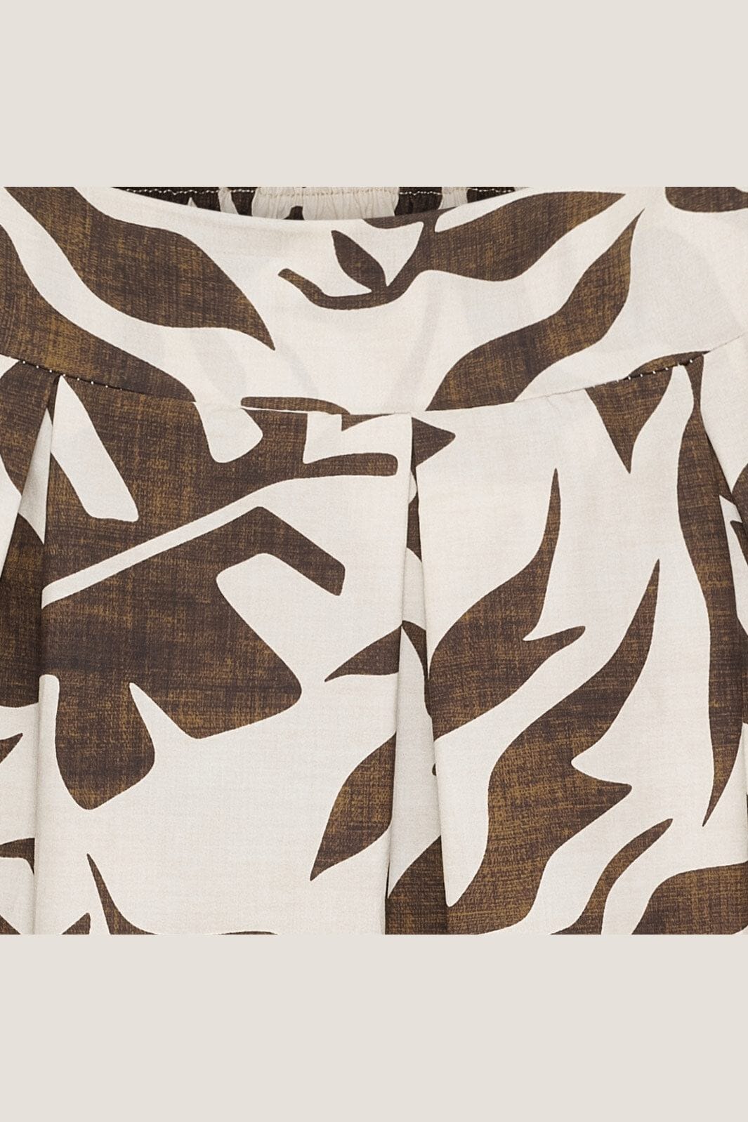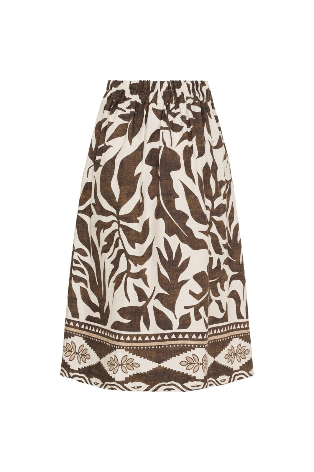 Brąskowa i kremowa spódnica od Marta Du Chateau z wzorem liści i dekoracyjnym wykończeniem na dole. Ma wysoki stan i luźny krój do długości łydki.