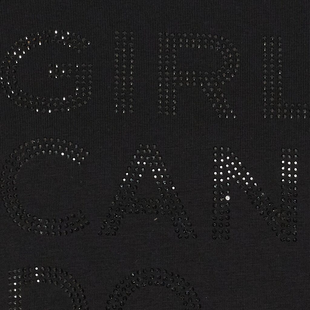 Czarna koszulka od Marta Du Chateau z napisem GIRLS CAN DO ANYTHING w małych, błyszczących cekinach na przodzie. Koszulka nadaje się zarówno do codziennego użytku, jak i do noszenia w domu.
