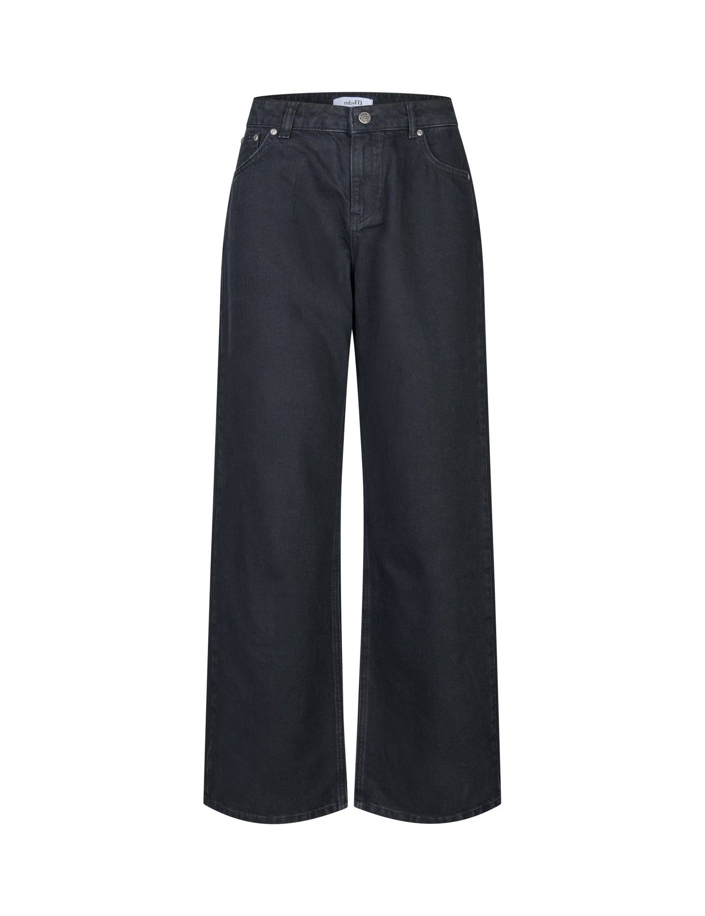 Czarne spodnie marki MbyM wykonane z bawełny. Spodnie mają wysoki stan i luźny krój z szerokimi nogawkami.