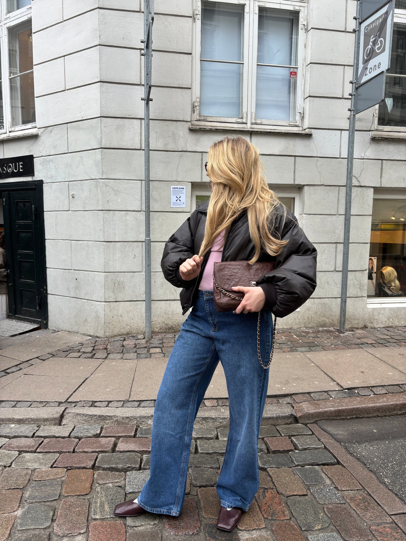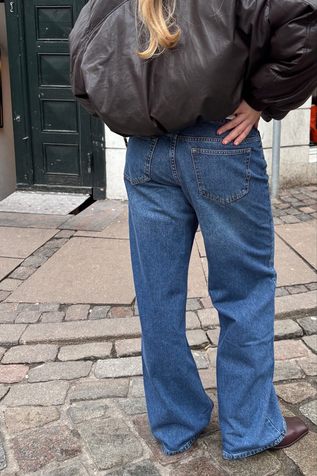 Dżinsy MbyM w vintage’owym niebieskim odcieniu. Dżinsy mają wysoki stan i luźny krój.
