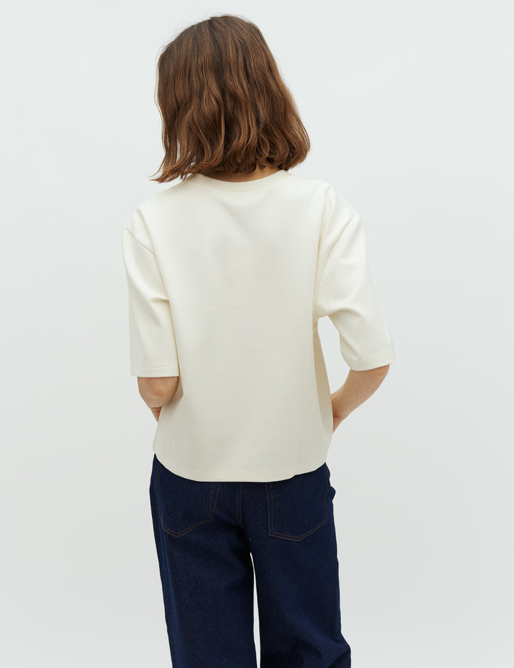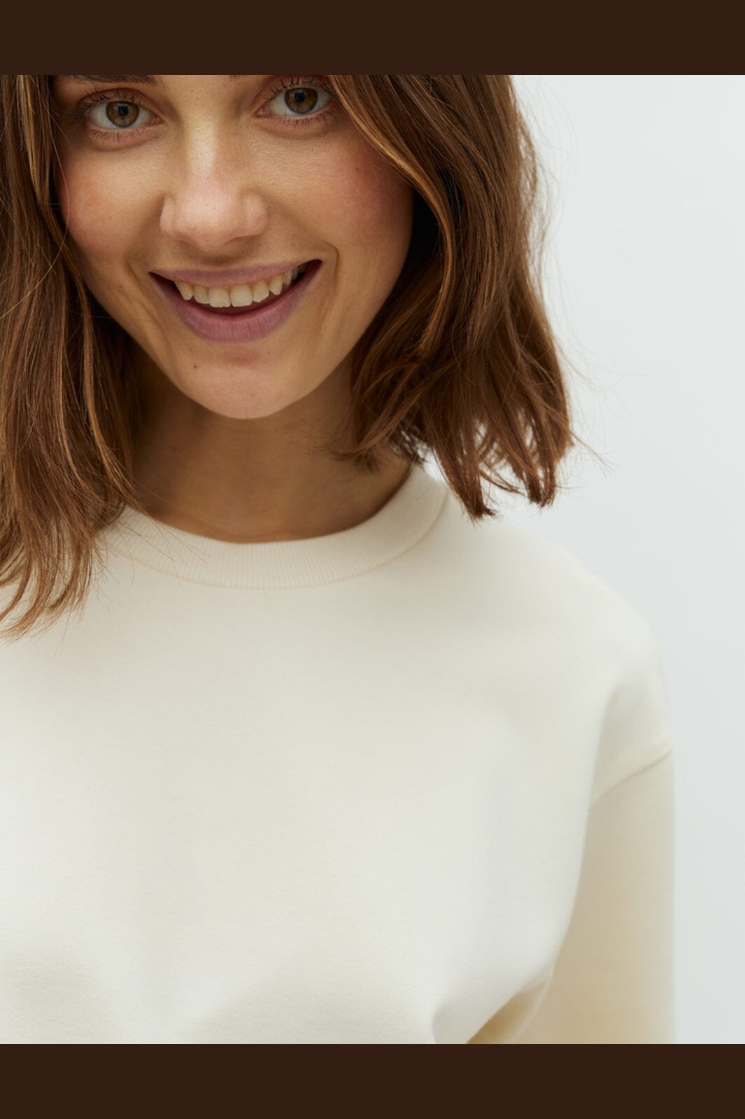 Bluzka z długim rękawem marki MbyM w kremowym odcieniu. Bluzka ma jednolity design i okrągły dekolt.