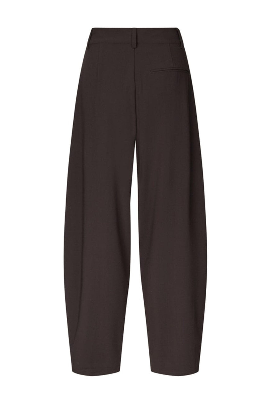 Ciemnobrązowe spodnie marki MbyM z wysokim stanem i szerokimi nogawkami. Spodnie mają luźny krój i sięgają do kostek.