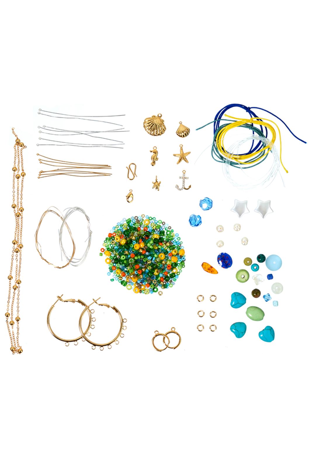 DIY pudełko na biżuterię w tematyce morskiej od Me & My Box. Pudełko zawiera ponad 300 elementów biżuteryjnych w odcieniach niebieskiego i zielonego, prawdziwe perły oraz zawieszki w kształcie muszelek i gwiazd morskich.