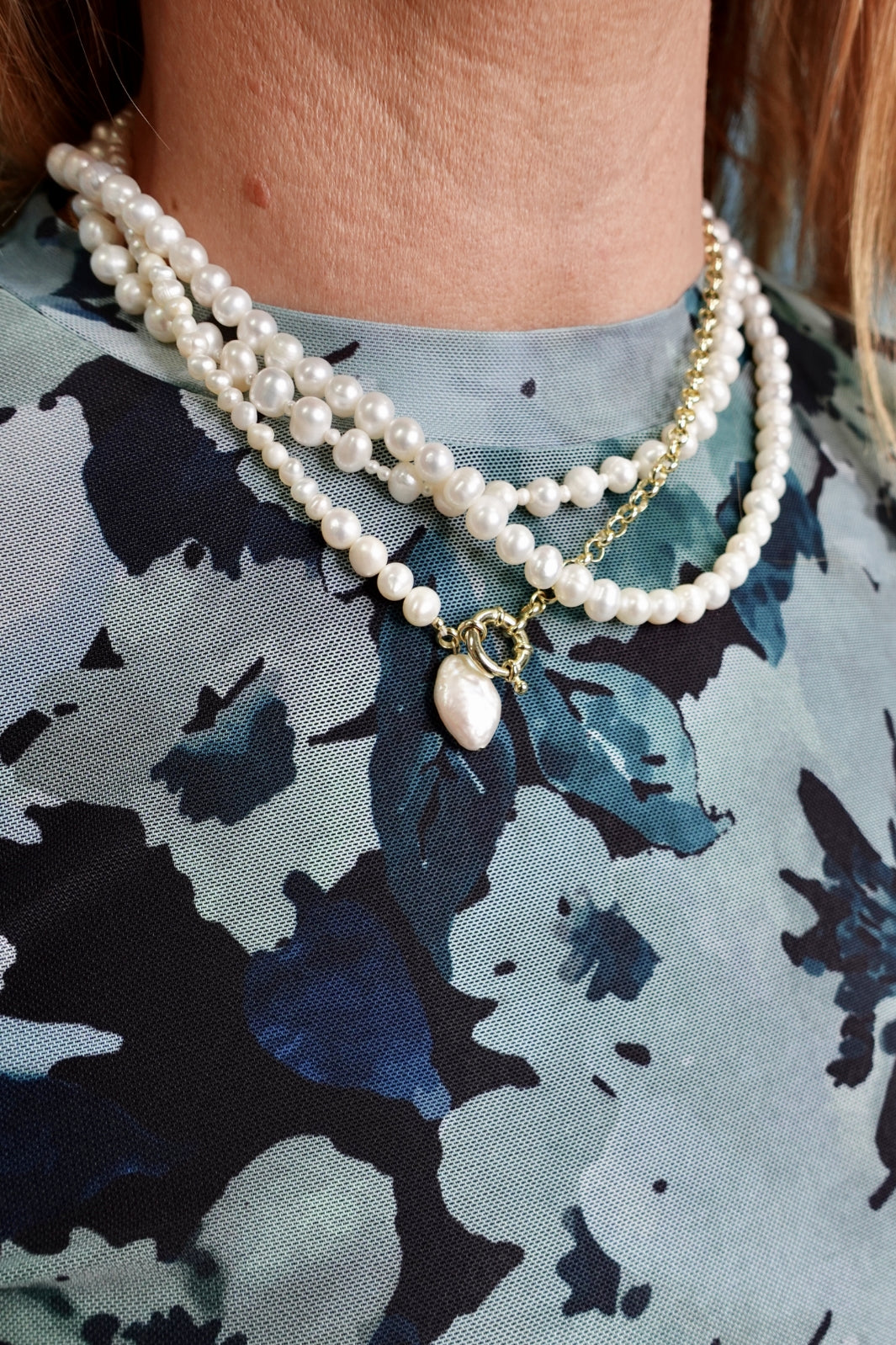 Mellow Moon Halskæde Med Hvide Perler Kolor: Forgyldt