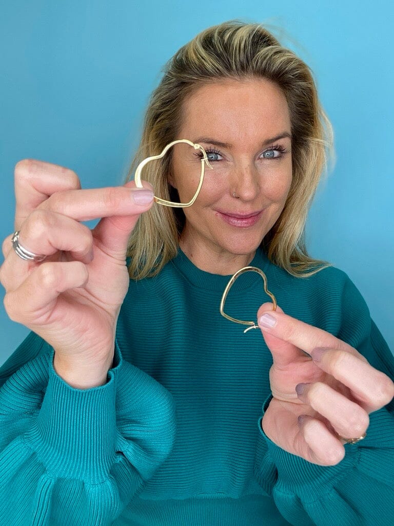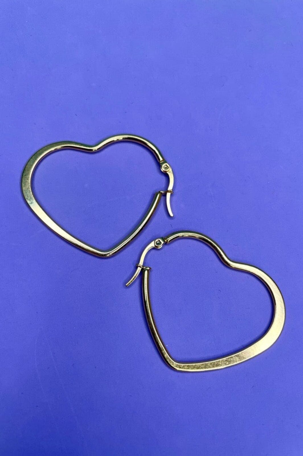 Kolczyki w kształcie serca od Mellow Moon z pozłacanego mosiądzu. Biżuteria jest wolna od niklu i ołowiu, co sprawia, że nadaje się dla wrażliwej skóry.