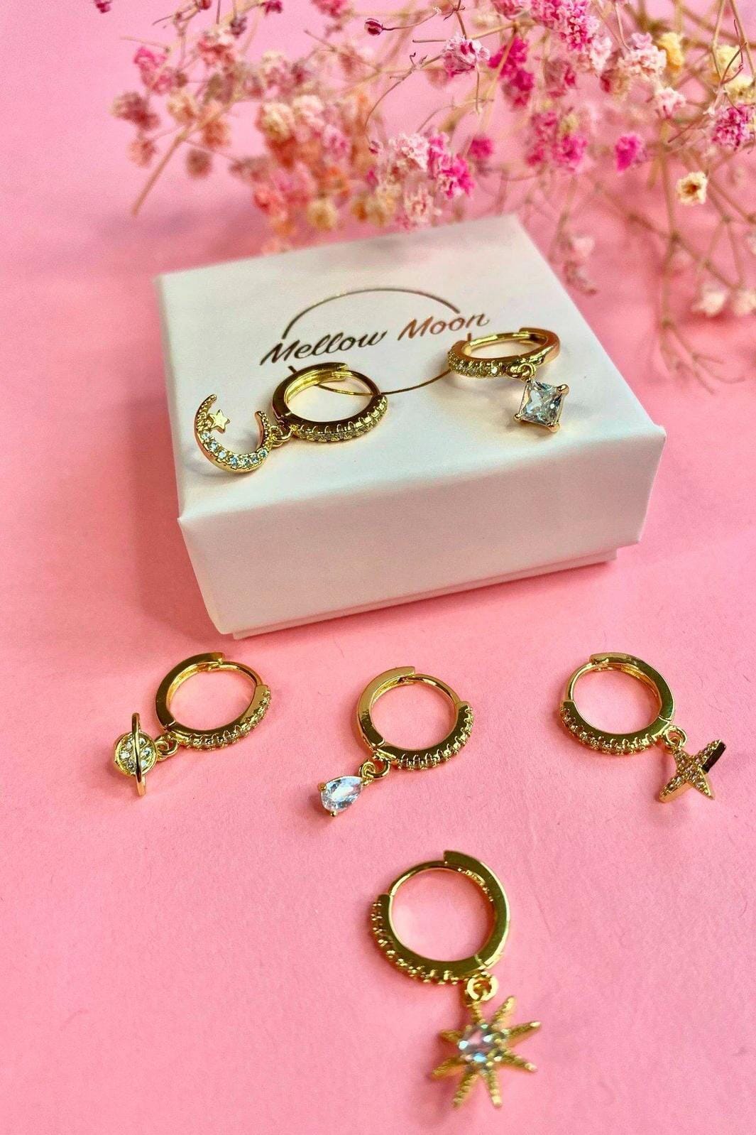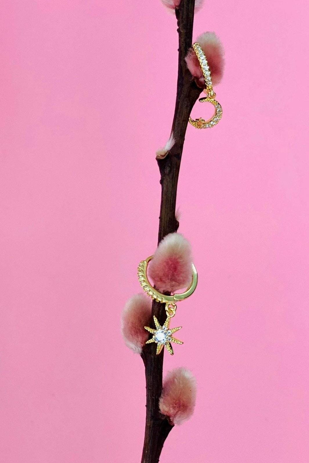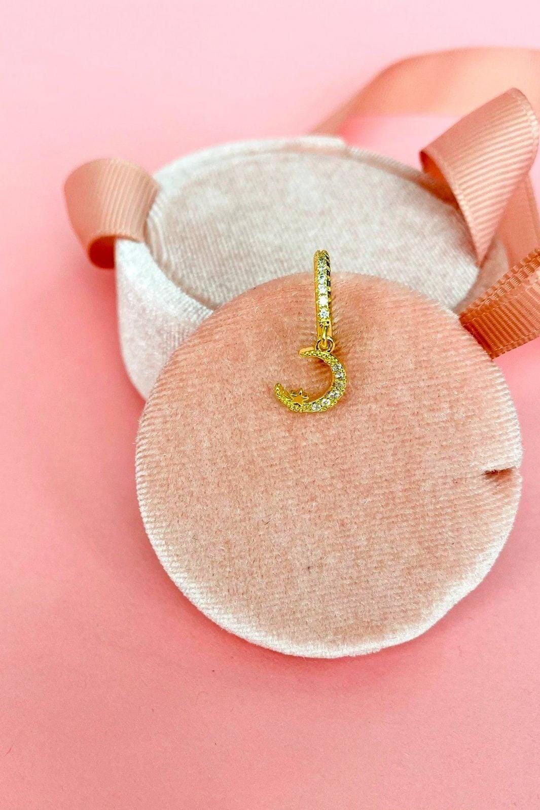 Kreolki od Mellow Moon z zawieszką w kształcie księżyca. Wykonane z pozłacanego mosiądzu, bez niklu i ołowiu, co sprawia, że są przyjazne dla skóry.
