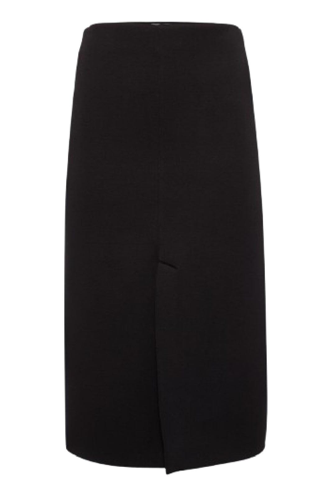 Czarna spódnica od Moves By Minimum o długości do kolan z prostą sylwetką i rozcięciem z przodu. Prosty styl pasuje zarówno do biura, jak i na uroczystości.
