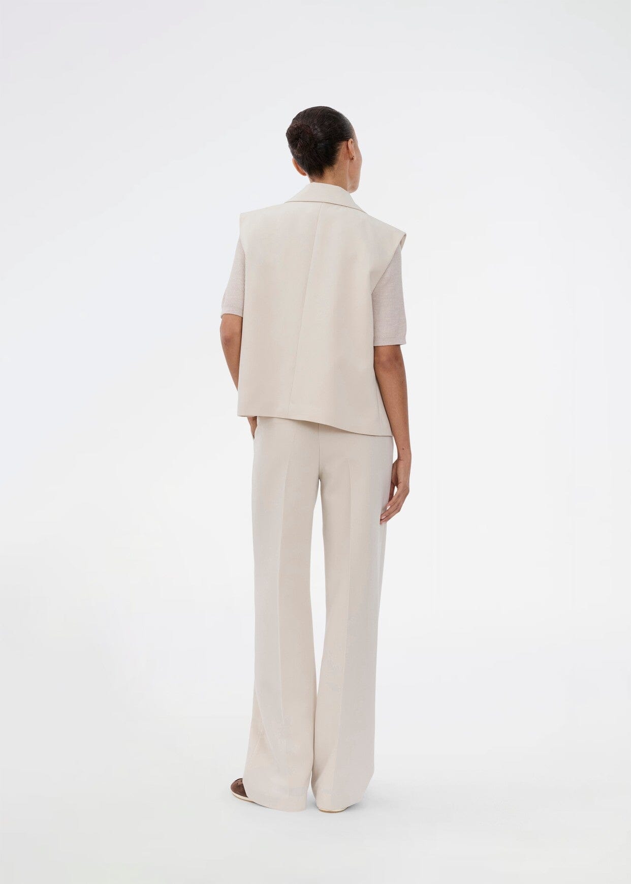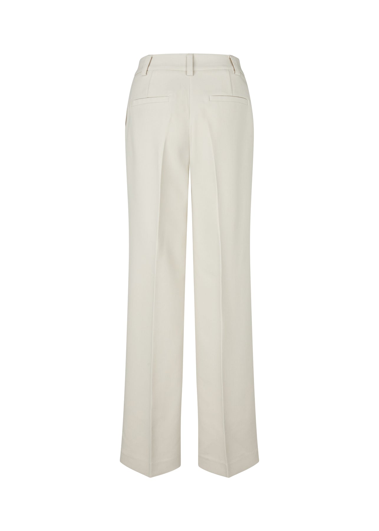 Spodnie Modström w jasnym odcieniu off-white. Spodnie mają szerokie nogawki z zaprasowanymi kantami i luźny krój.