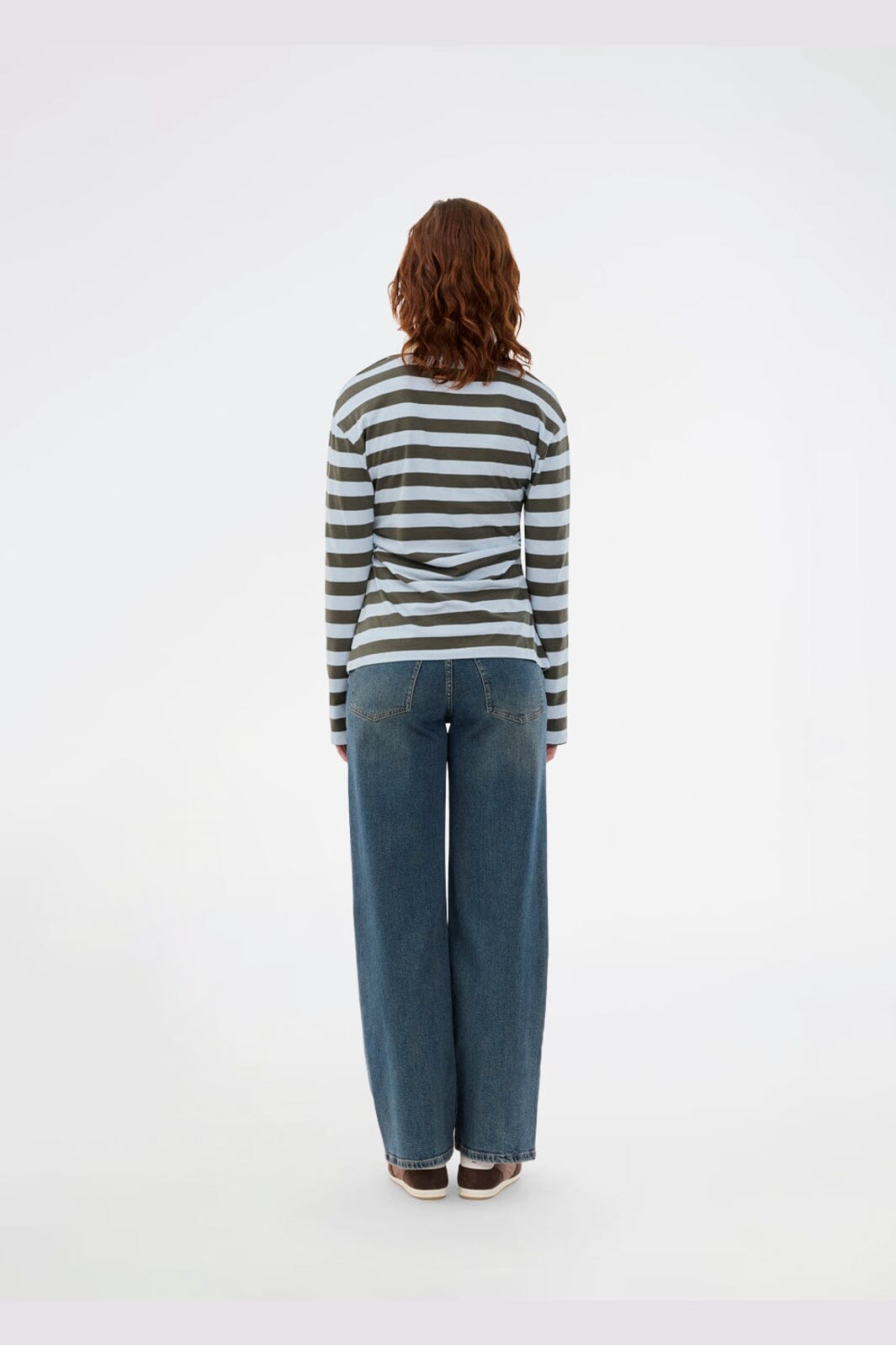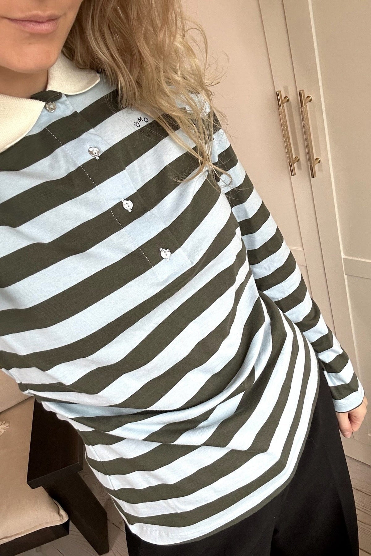 Polo z długim rękawem od Modström z ekologicznej bawełny. Zaprojektowana z poziomymi paskami w jasnoniebieskich i ciemnozielonych odcieniach oraz białym kołnierzykiem polo z zapięciem na guziki.