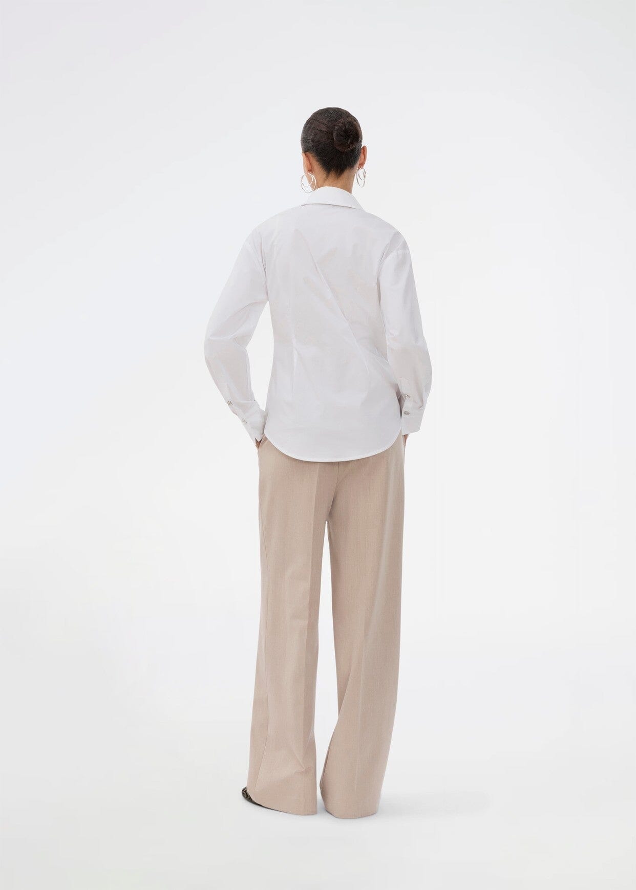 Biała koszula Modström wykonana w 97% z bawełny organicznej. Koszula ma spiczasty kołnierzyk i częściowe zapięcie na guziki. Taliowany krój podkreśla kobiecą sylwetkę.
