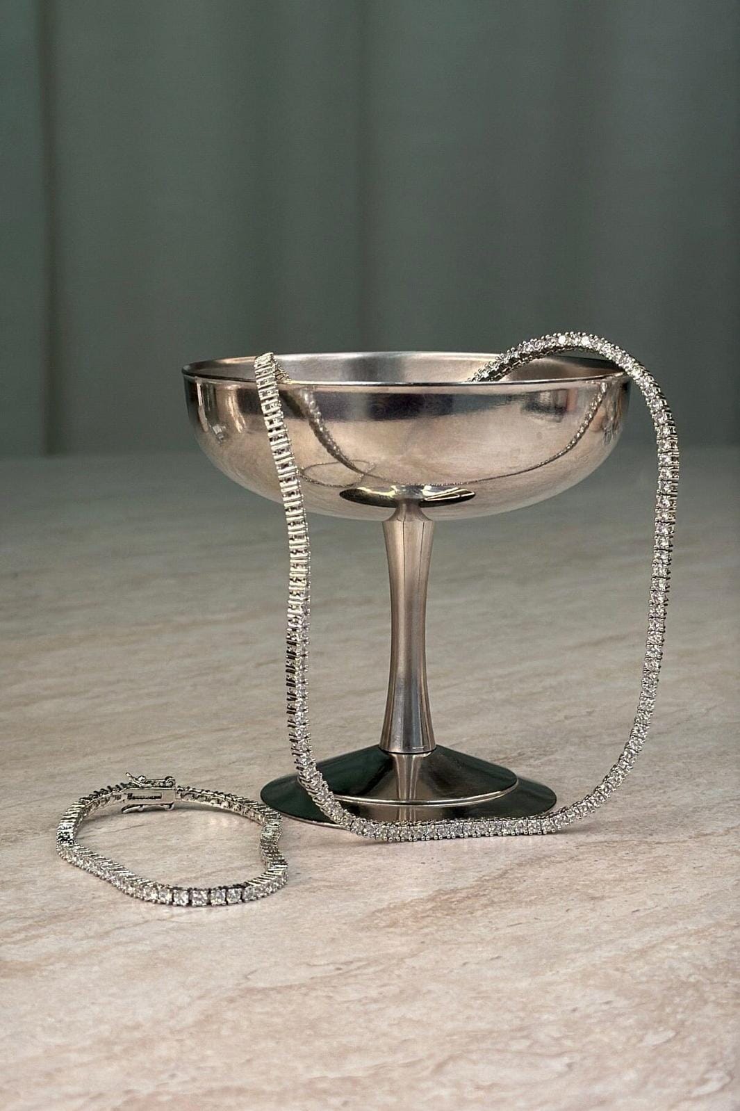 Zestaw biżuterii Molly&My Jewellery z posrebrzanym wykończeniem. Zestaw składa się z naszyjnika i bransoletki z małymi kamieniami.