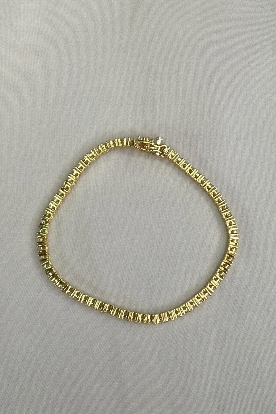 Pozłacana bransoletka od Molly&My Jewellery z przezroczystymi kamieniami na całej długości. Bransoletka ma złocistą powierzchnię i mechanizm zapięcia.