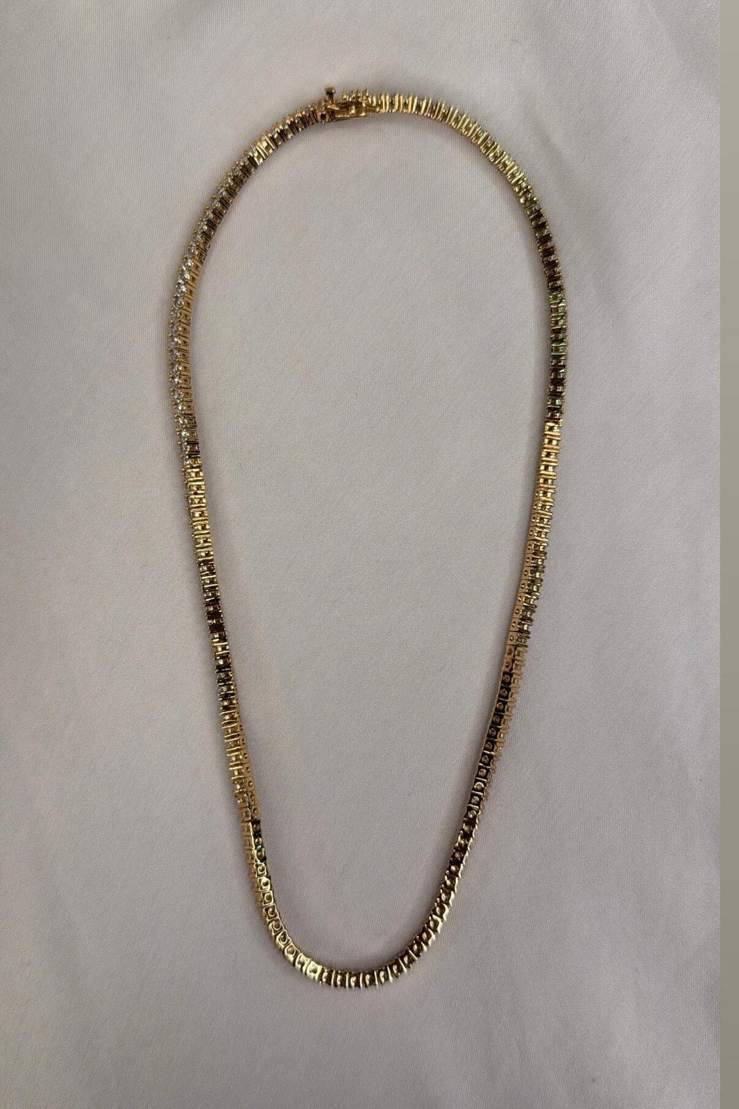 Pozłacany zestaw biżuterii od Molly&My Jewellery z przezroczystymi kamieniami na całej długości. Zestaw składa się z naszyjnika i bransoletki w złotym wykończeniu.