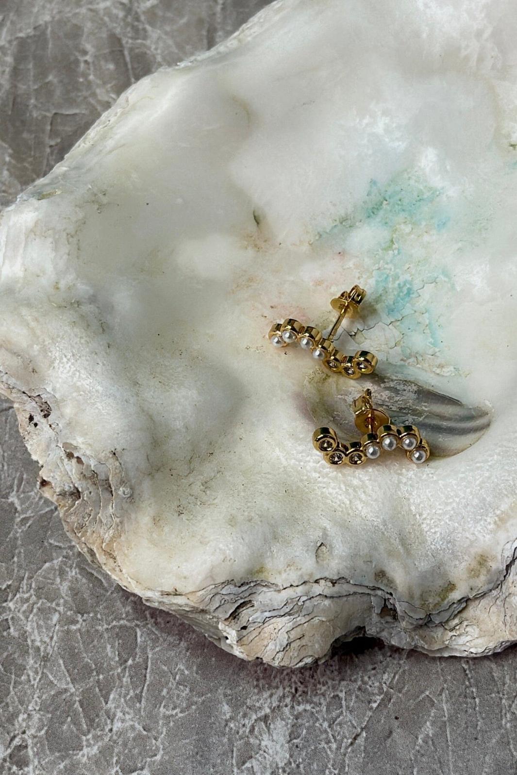 Kolczyki o falistym kształcie od Molly&My Jewellery x Melanie Due, wykonane ze stali nierdzewnej z pozłacanym wykończeniem.