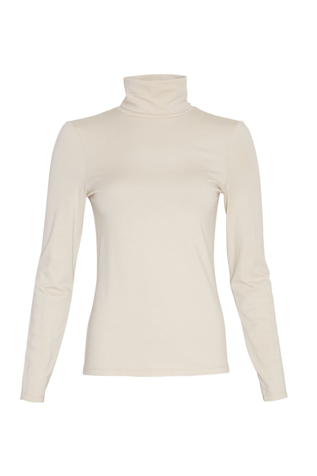 Długi rękaw top od Moss Copenhagen z wysokim golfem w odcieniu owsa. Miękka mieszanka materiałów zapewnia swobodę ruchów i zachowuje kształt.