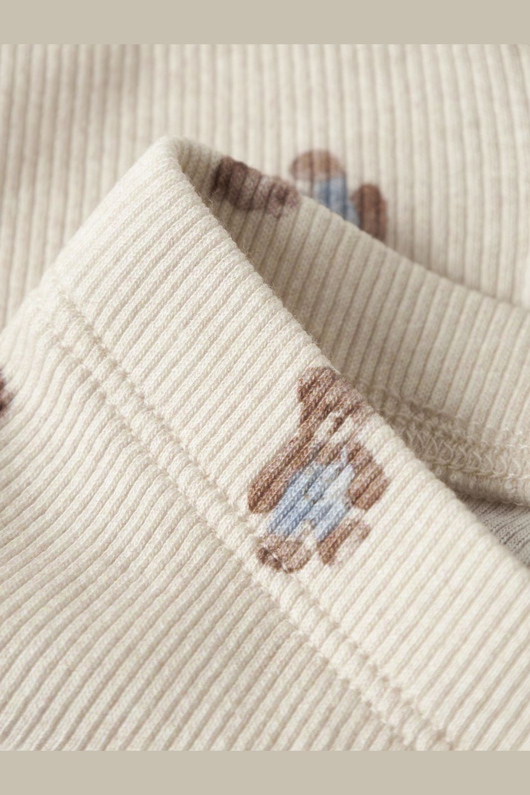 Długie kalesony od Name It w beżowym kolorze, z wzorem małych misiów na całej powierzchni.