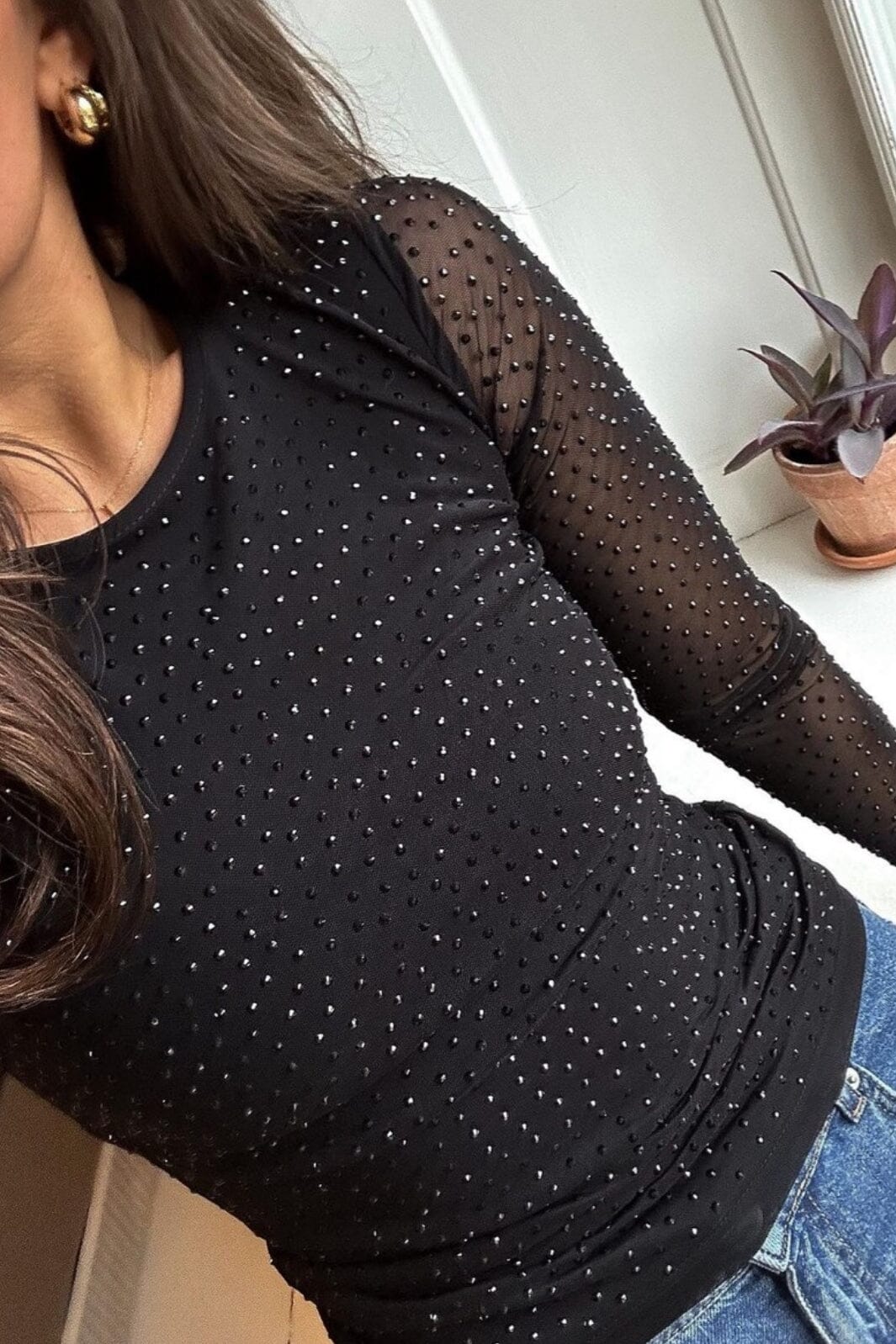 Neo Noir Basira Stone Mesh Blouse Kolor: Black