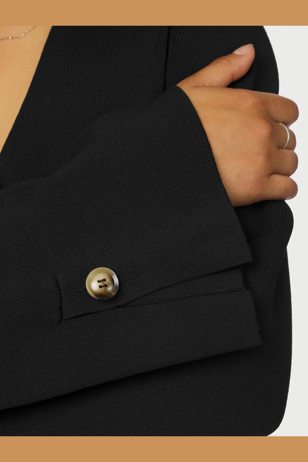 Czarna dzianinowa bluzka marki Neo Noir o dopasowanym kroju. Bluzka ma dekolt w kształcie litery V, guziki z rogu i długie rękawy.