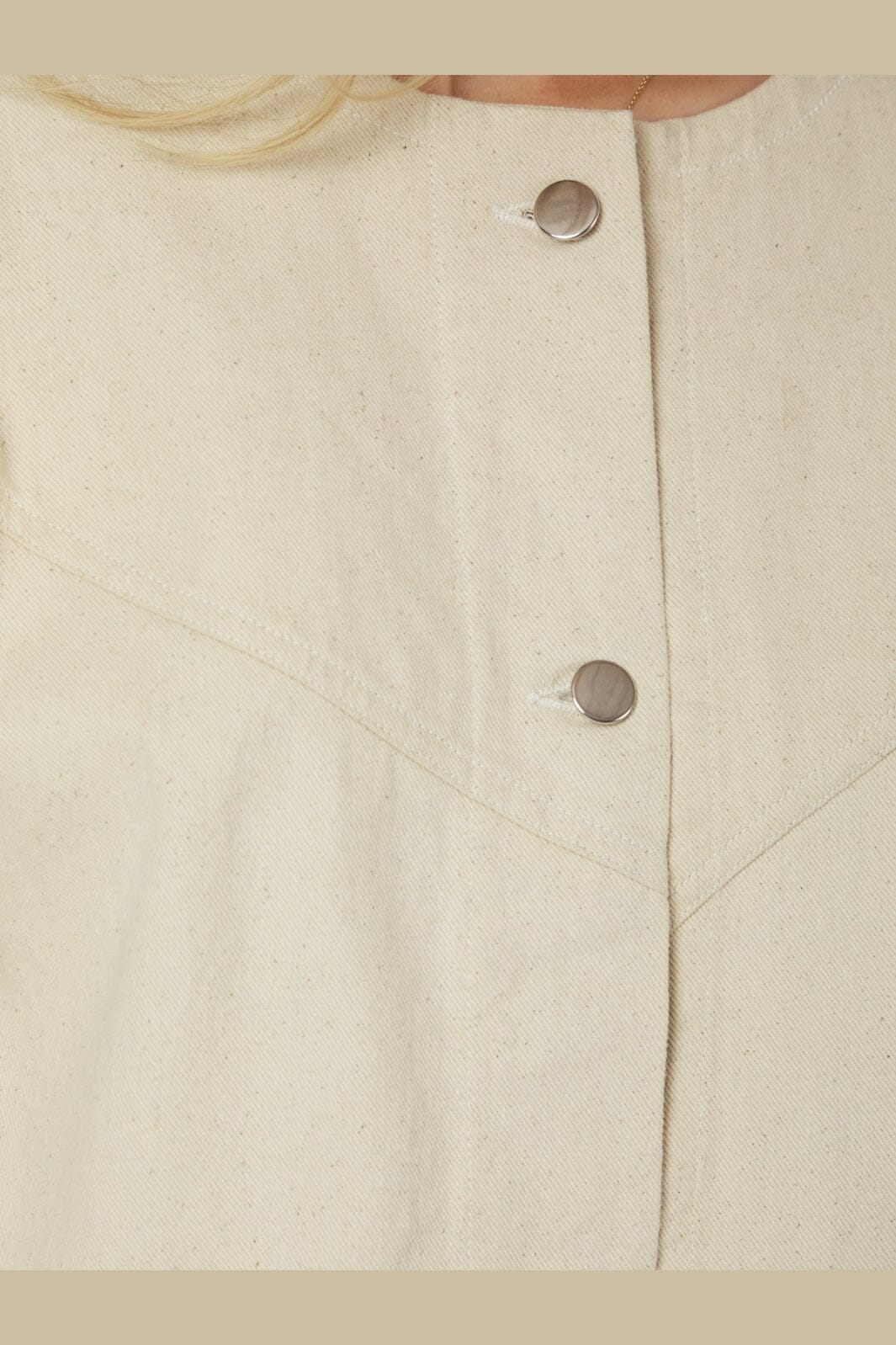 Kurtka dżinsowa Neo Noir w naturalnym kolorze. Kurtka wykonana jest w 100% z bawełny i ma długie, bufiaste rękawy oraz dekoracyjne przeszycia.