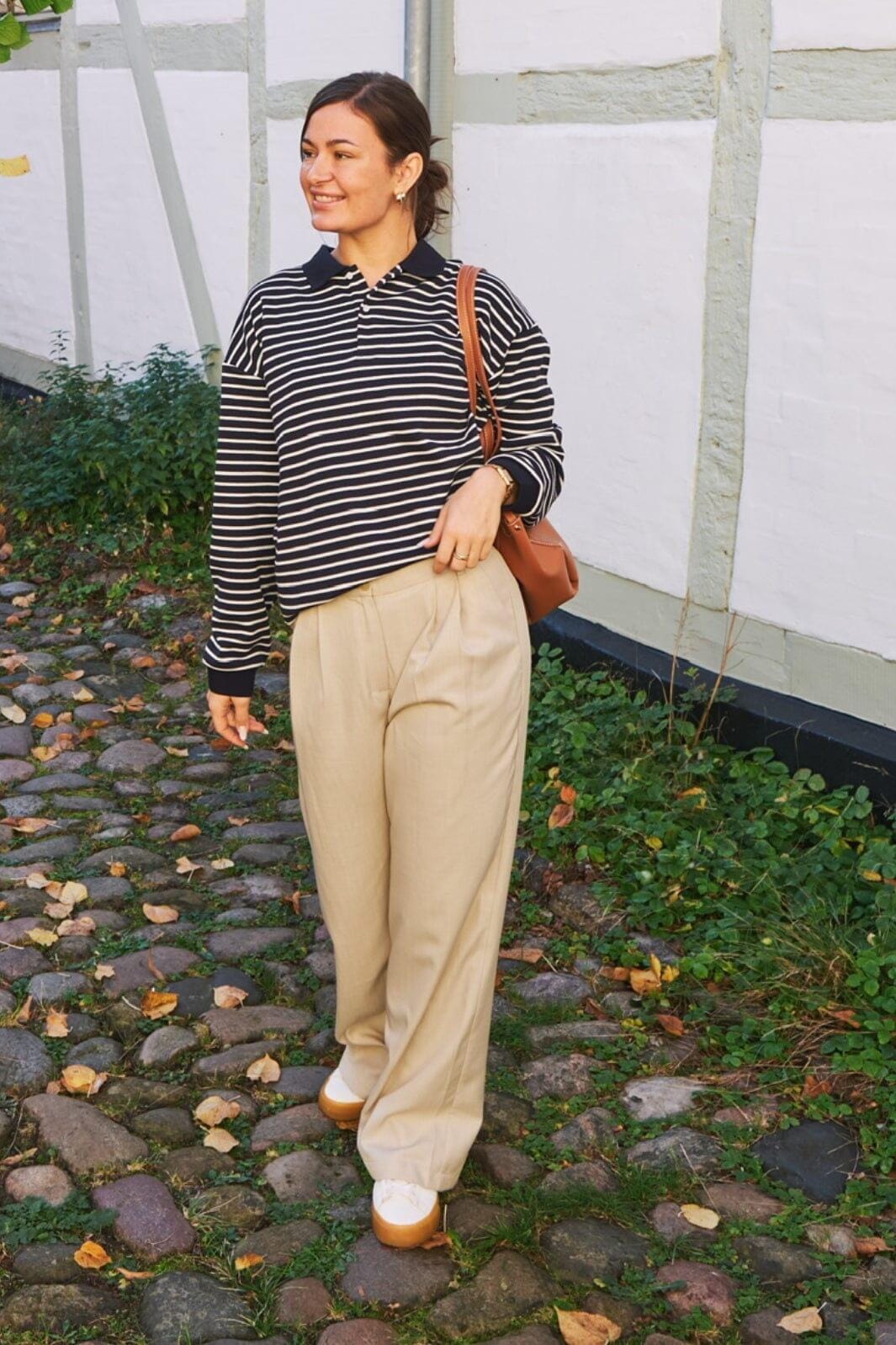 Beżowe spodnie od Neo Noir z szerokimi nogawkami i plisami w talii. Spodnie mają luźny krój i wysoki stan, co zapewnia dużą swobodę ruchów.