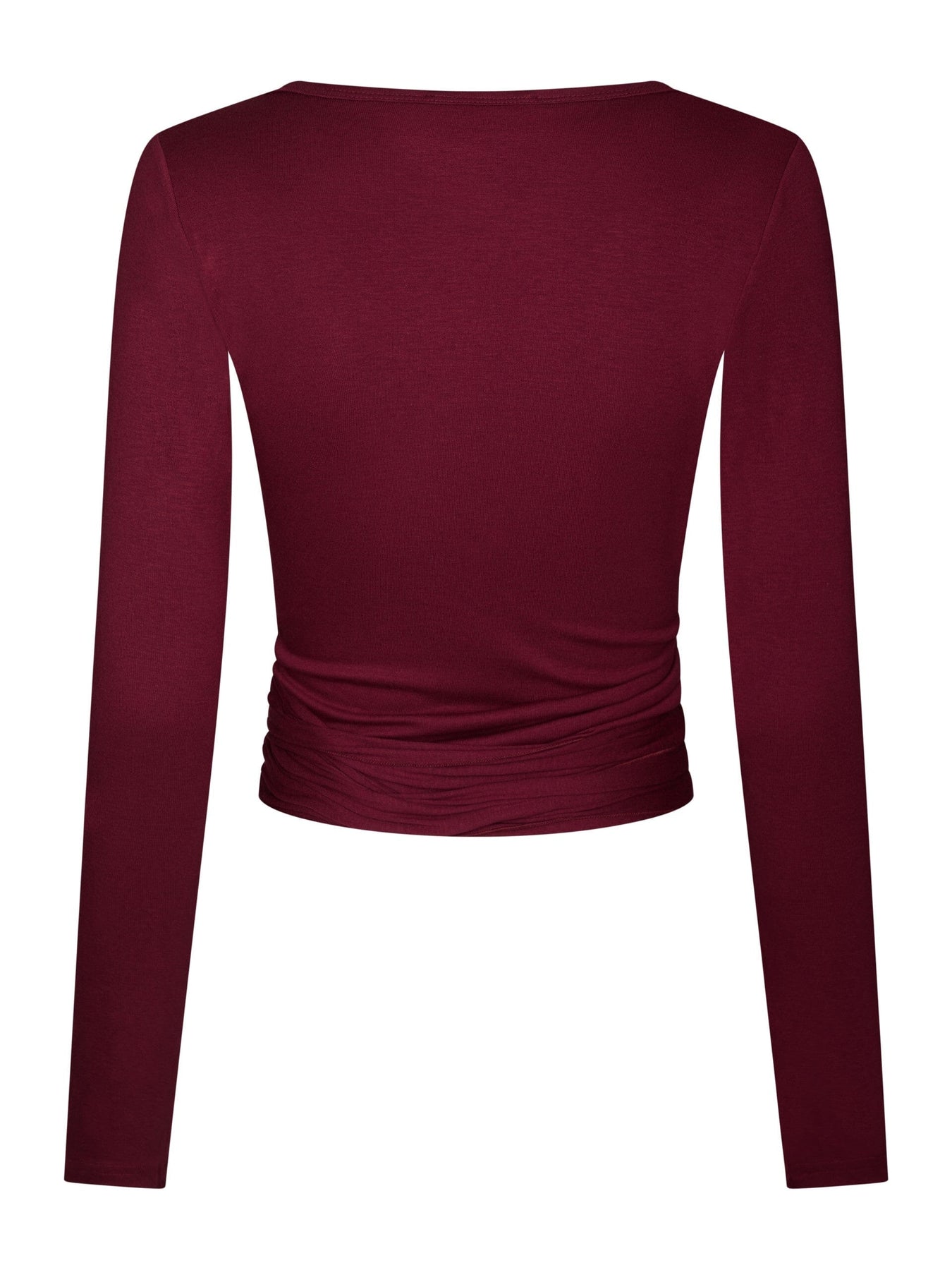 Bluzka kopertowa Neo Noir w głębokim czerwonym kolorze. Bluzka wykonana jest z miękkiej dzianiny typu jersey, zawierającej 91% wiskozy i 9% elastanu.