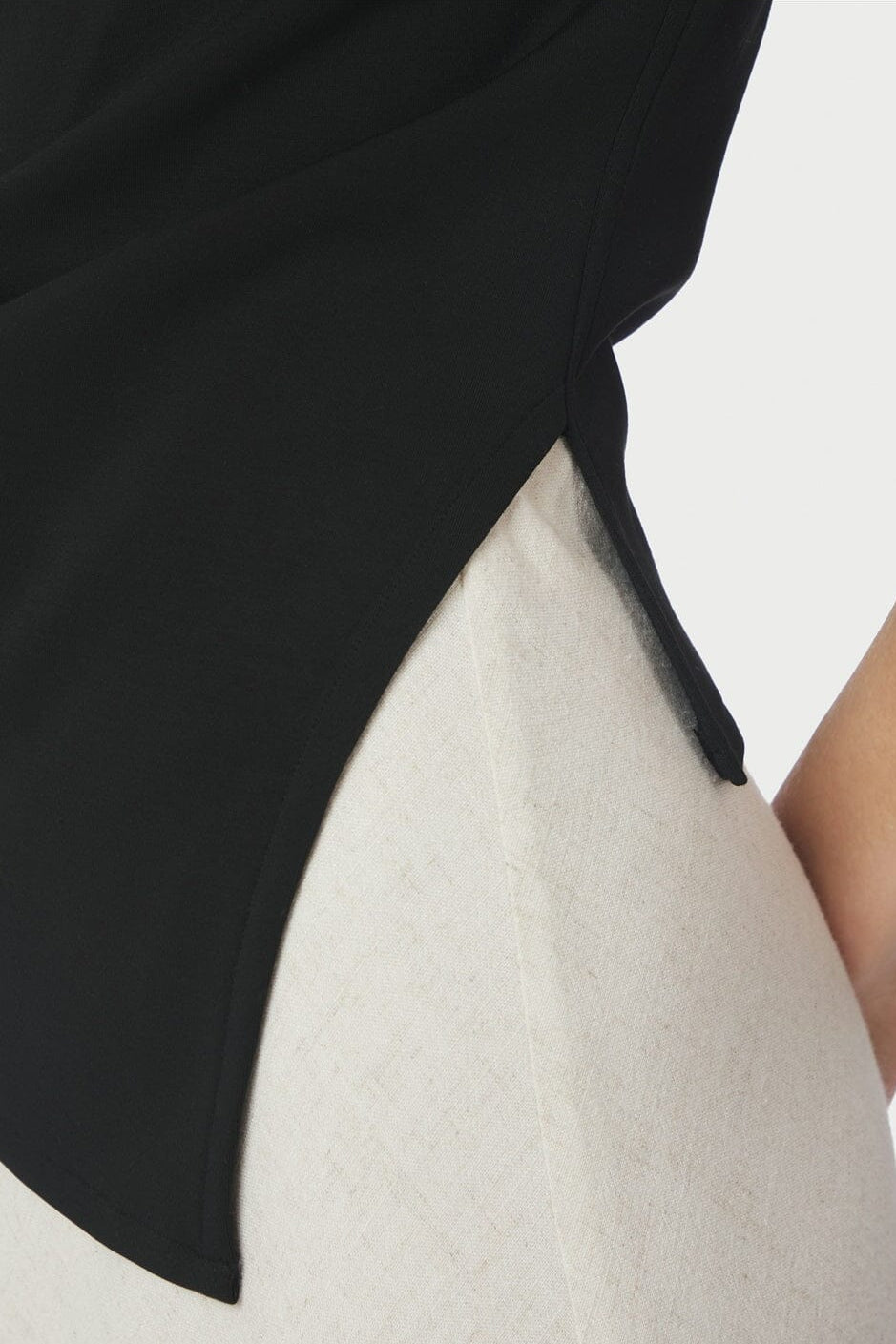 Czarna bluzka Neo Noir z miękkiej mieszanki poliestru, modalu i elastanu. Bluzka ma drapowanie z przodu oraz asymetryczny dół.