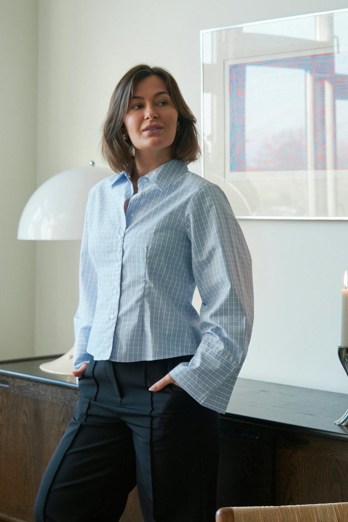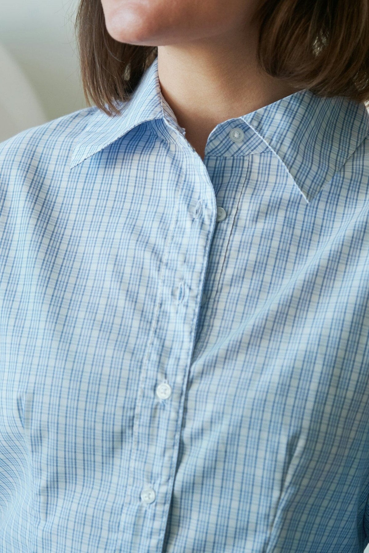 Jasnoniebieska koszula w kratę od Neo Noir o dopasowanym kroju. Koszula ma klasyczny kołnierzyk i szerokie mankiety na długich rękawach. Guziki z przodu ułatwiają zakładanie i zdejmowanie.