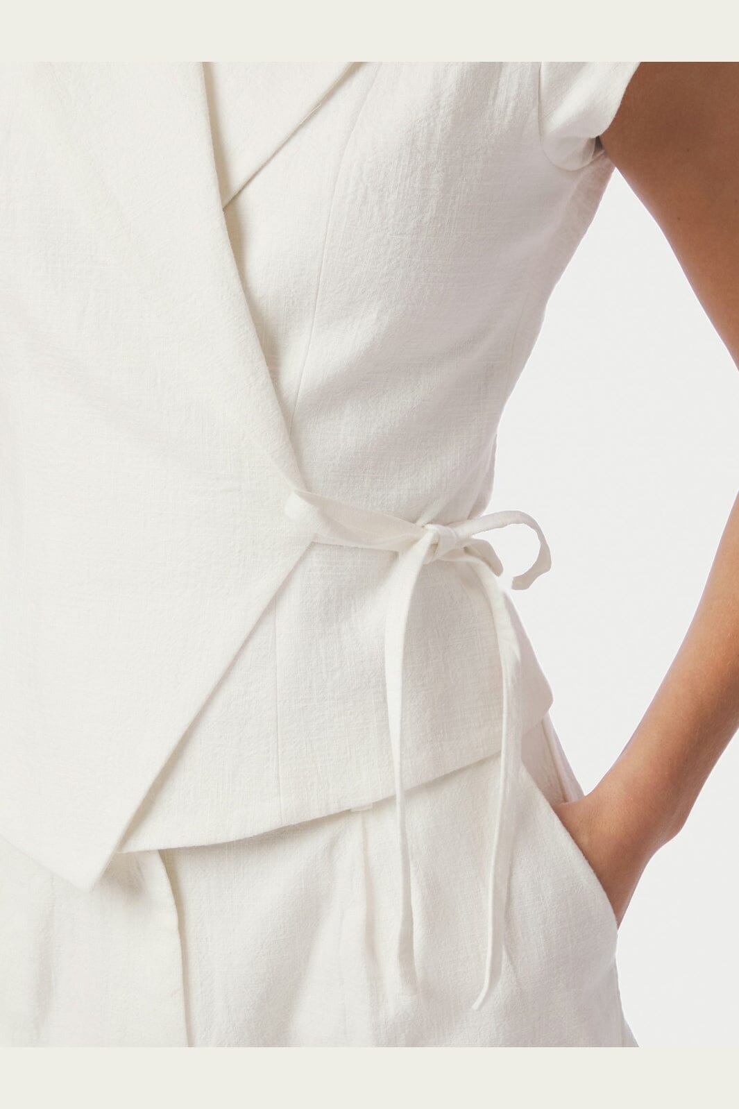 Kamizelka Neo Noir w kremowym odcieniu. Kamizelka wykonana jest w 80% z ramii i w 20% z bawełny, ma krótkie rękawy i kołnierzyk koszulowy.