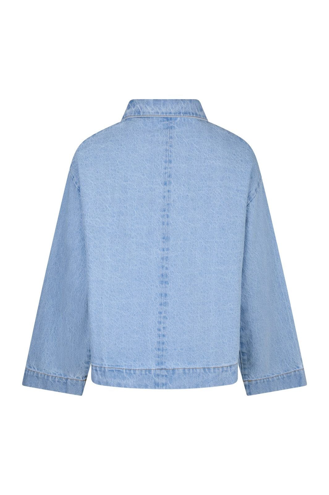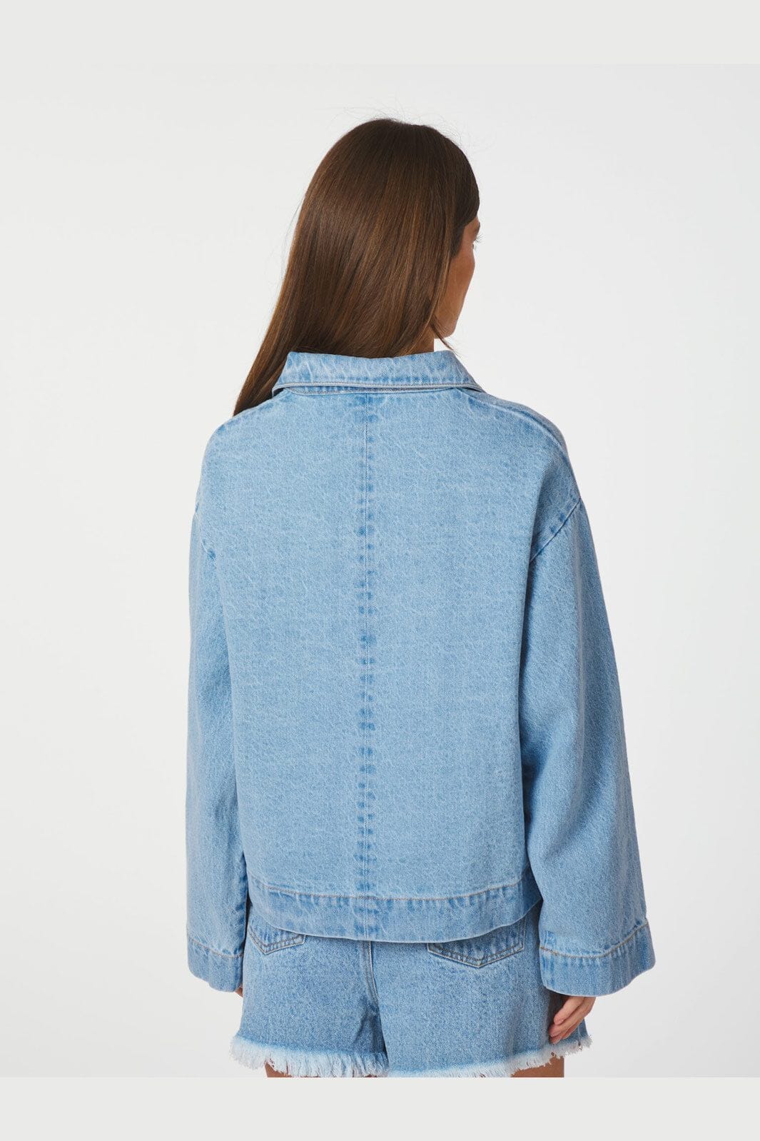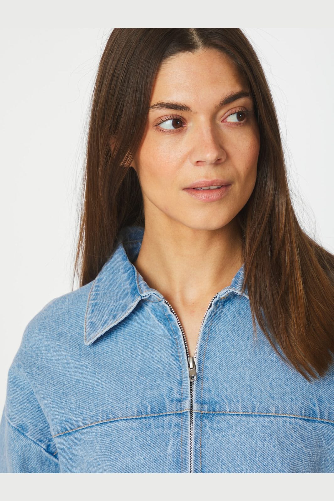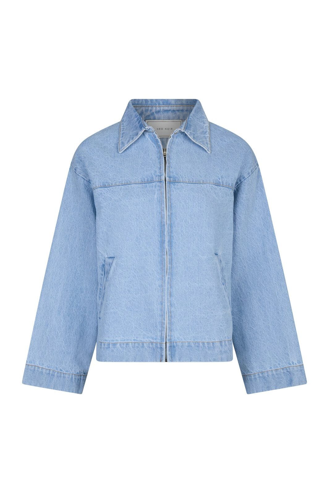 Kurtka dżinsowa od Neo Noir w jasnoniebieskim kolorze. Oversize'owy model z klapanym kołnierzem i zamkiem błyskawicznym z przodu. Kurtka ma praktyczne boczne kieszenie i jest wykonana z denimu.