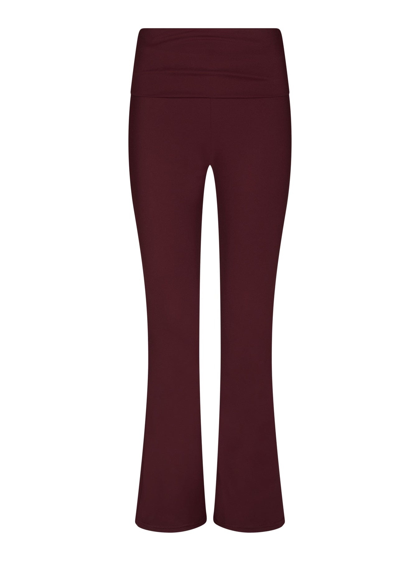 Legginsy Neo Noir w głębokim czerwonym odcieniu. Spodnie wykonane są w 75% z nylonu i w 25% z elastanu, mają wysoki stan i delikatnie rozszerzane nogawki przy kostkach.
