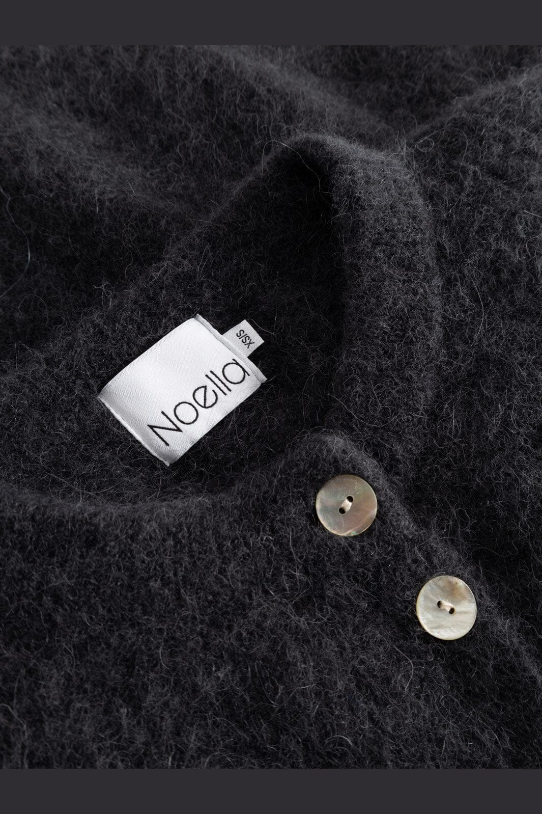 Ciemnoszara sweter cardigan od Noella z bufiastymi rękawami i guzikami perłowymi. Luźny krój i miękka mieszanka materiałów zapewniają wygodny cardigan na co dzień.