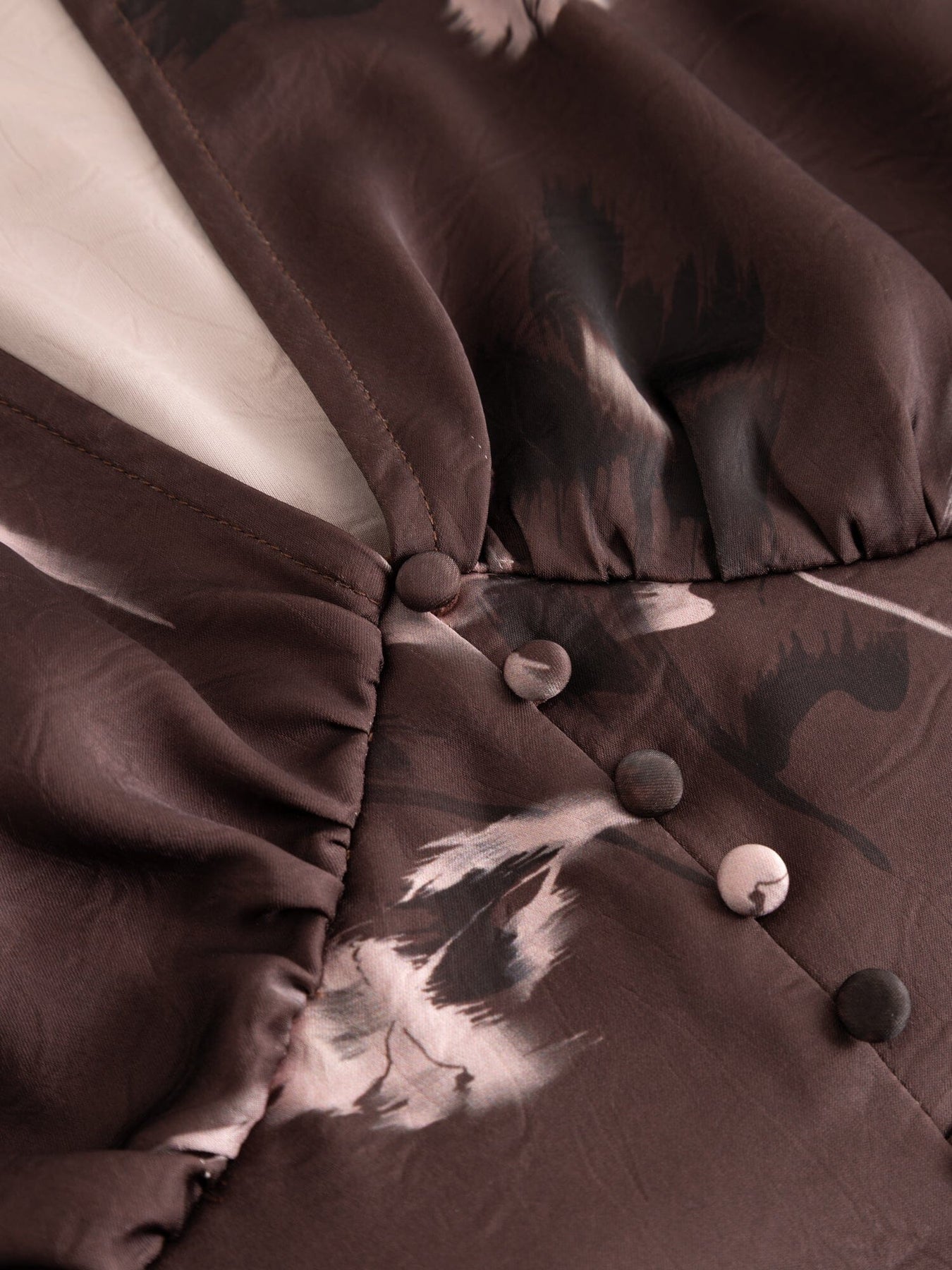 Bluzka od Noella z kwiatowym wzorem w odcieniach burgunda i różu. Bluzka nadaje się zarówno na relaksujące dni, jak i na uroczyste okazje.