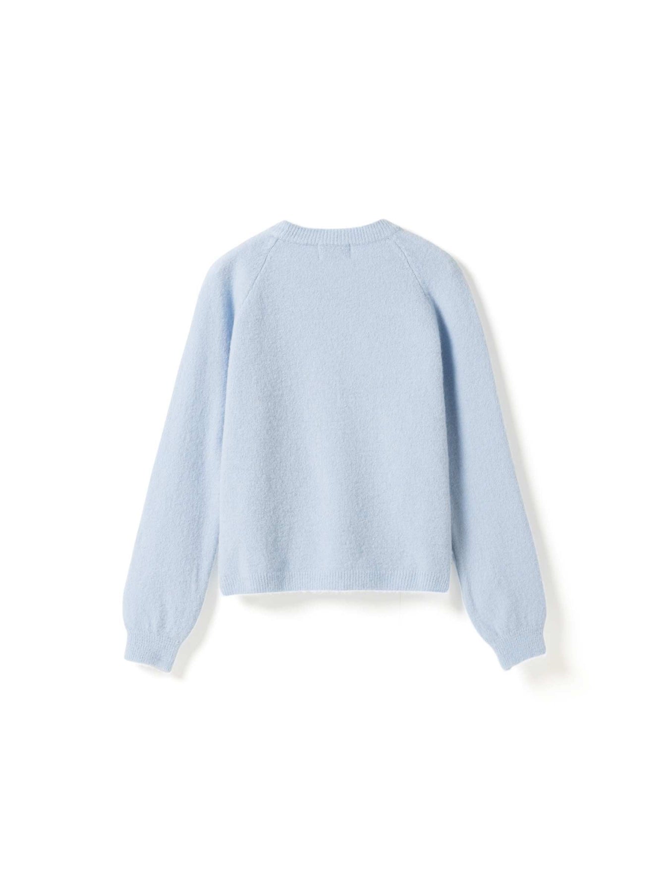 Jasnoniebieski sweter Noella na swobodne okazje i do użytku domowego. Sweter ma luźny krój z długimi rękawami i okrągłym dekoltem.