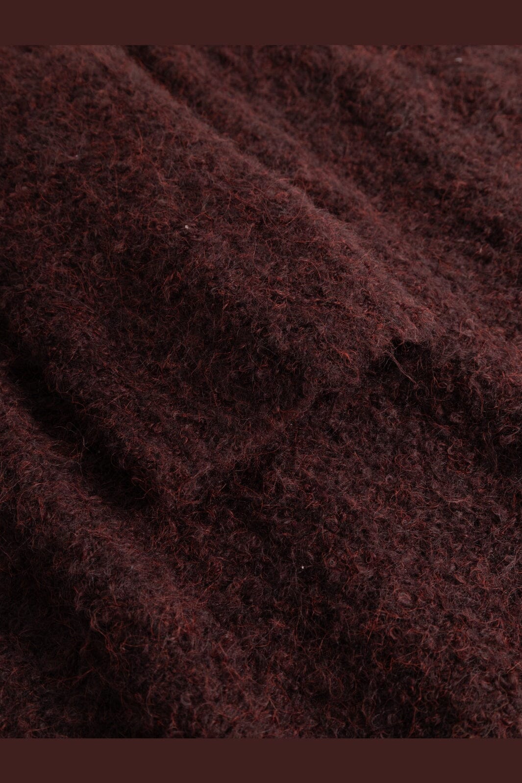 Sweter dzianinowy od Noella, wykonany z przędzy bouclé w głębokim, winno-czerwonym odcieniu. Sweter ma miękką i puszystą strukturę.