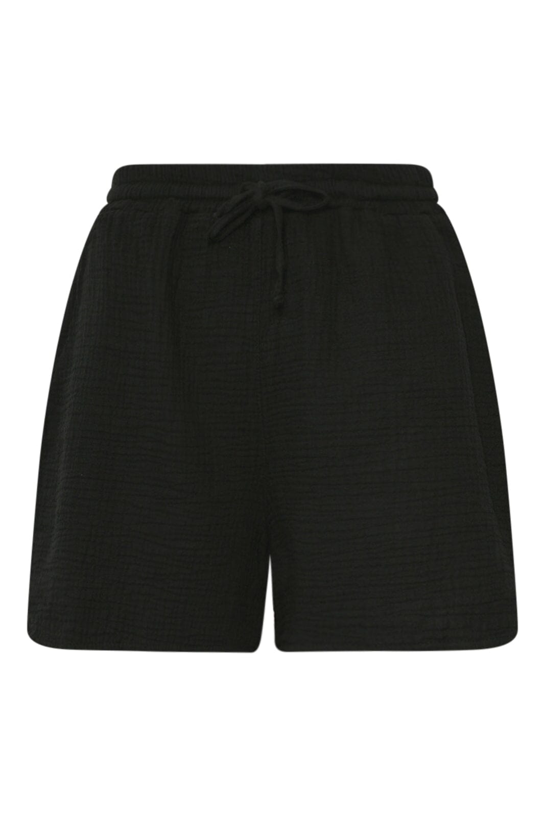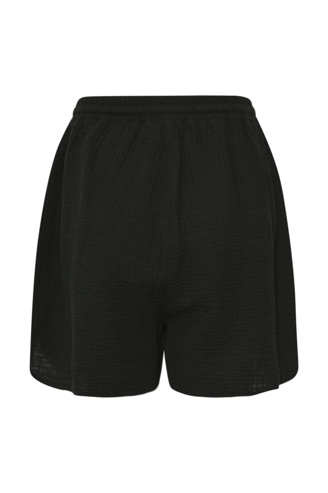 Czarne szorty od Noella o luźnym kroju. Szorty mają pomarszczoną teksturę i elastyczny pas z sznurkiem, co pozwala na dostosowanie dopasowania.