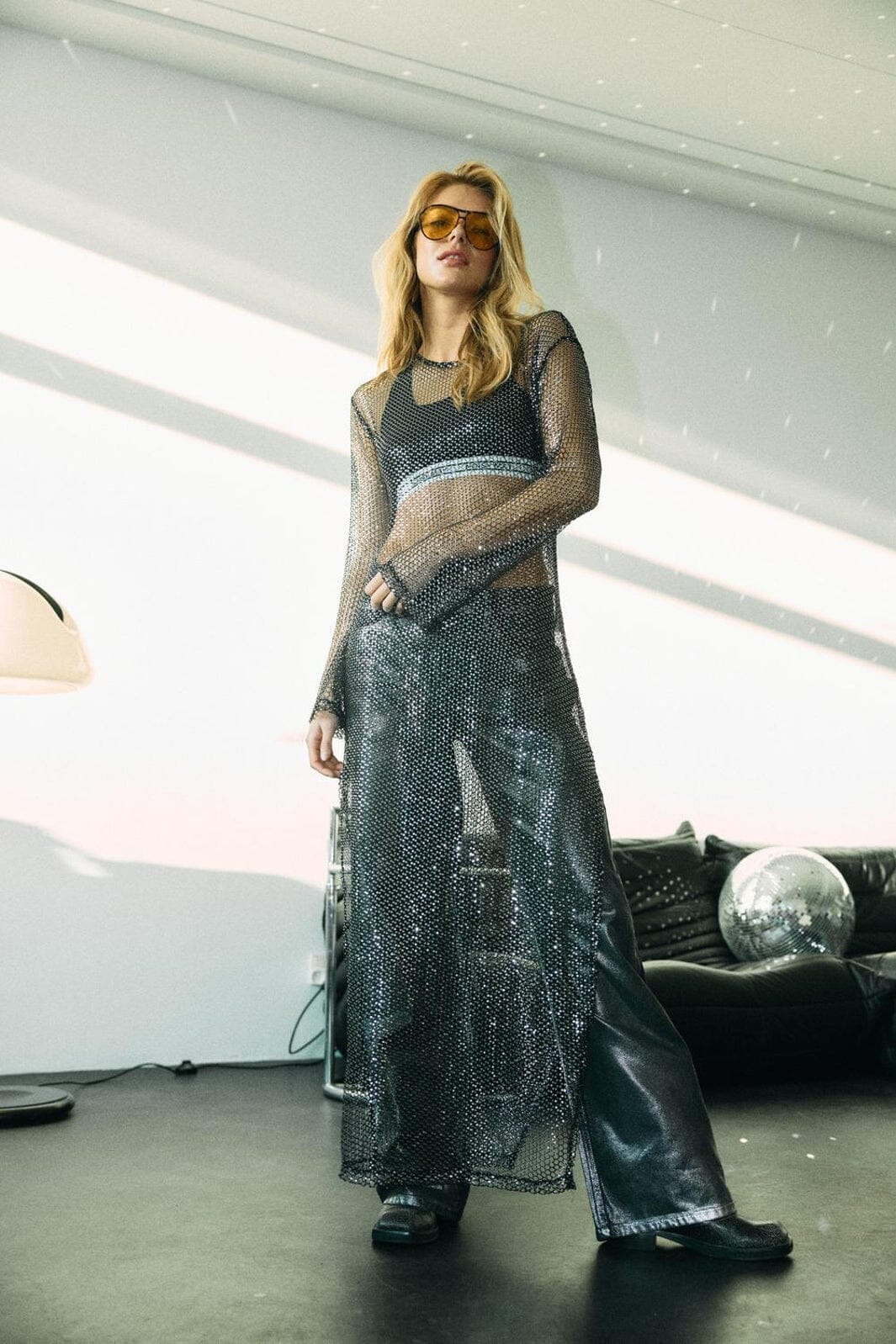 Jeansy od Noisy May w średnio niebieskim denimu z powłoką srebrną. Błyszcząca powierzchnia łączy efekt acid wash z metalicznym blaskiem, który nadaje spodniom ich wyjątkowy charakter.