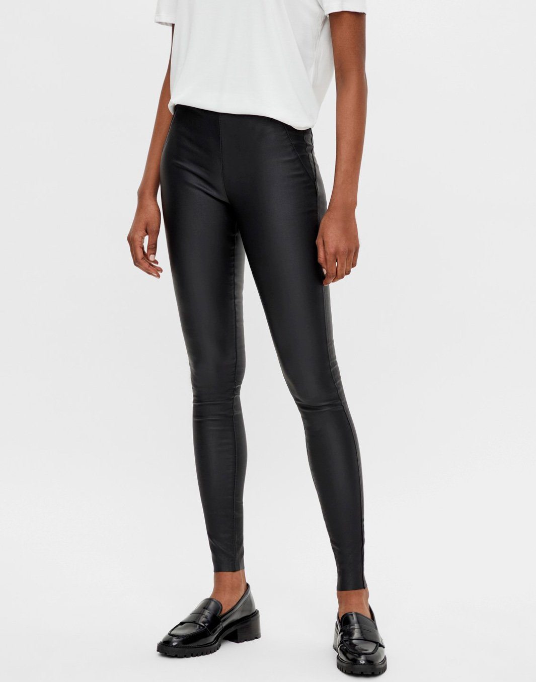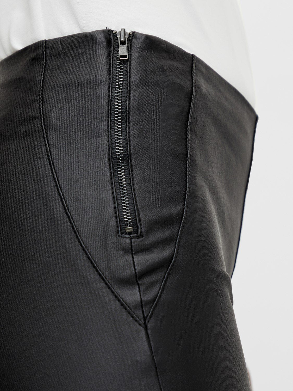 Czarne legginsy od Object z powłoką i zapięciem na zamek z boku. Powlekany materiał nadaje skórzany wygląd, a legginsy mają dopasowany krój.