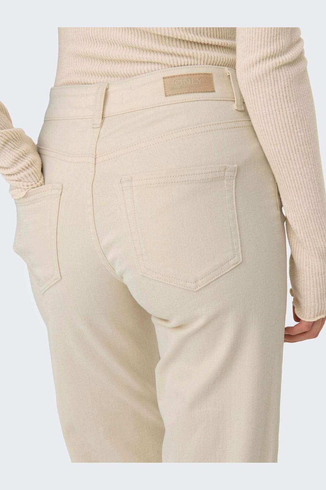 Proste spodnie marki Only w kolorze off-white. Spodnie mają prosty krój ze średnim stanem i długością do kostek.