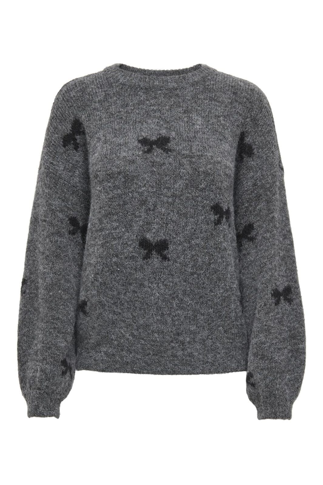 Only Onlbrunhilda Life Ls Bow O-Neck Knt Kolor: 4947221 Medium Grey Melange Black/Mini Bow