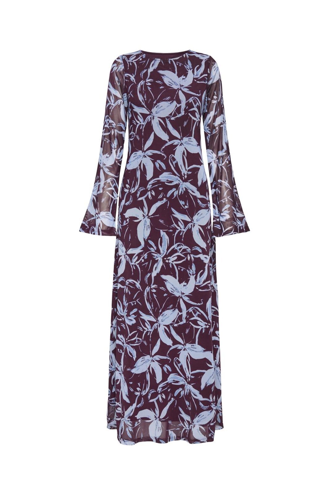 Only Onlcyril Mesh L/S Ankel Dress Kolor: 4963719 Port Royale Blue Flowers