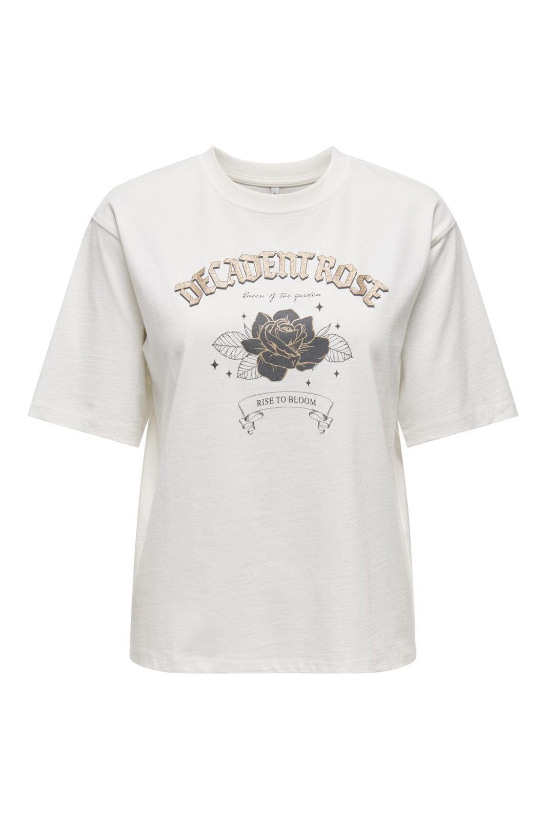 Only Onllana Life S/S Print Top Box Kolor: 4916005 Cloud Dancer Lana Decadent