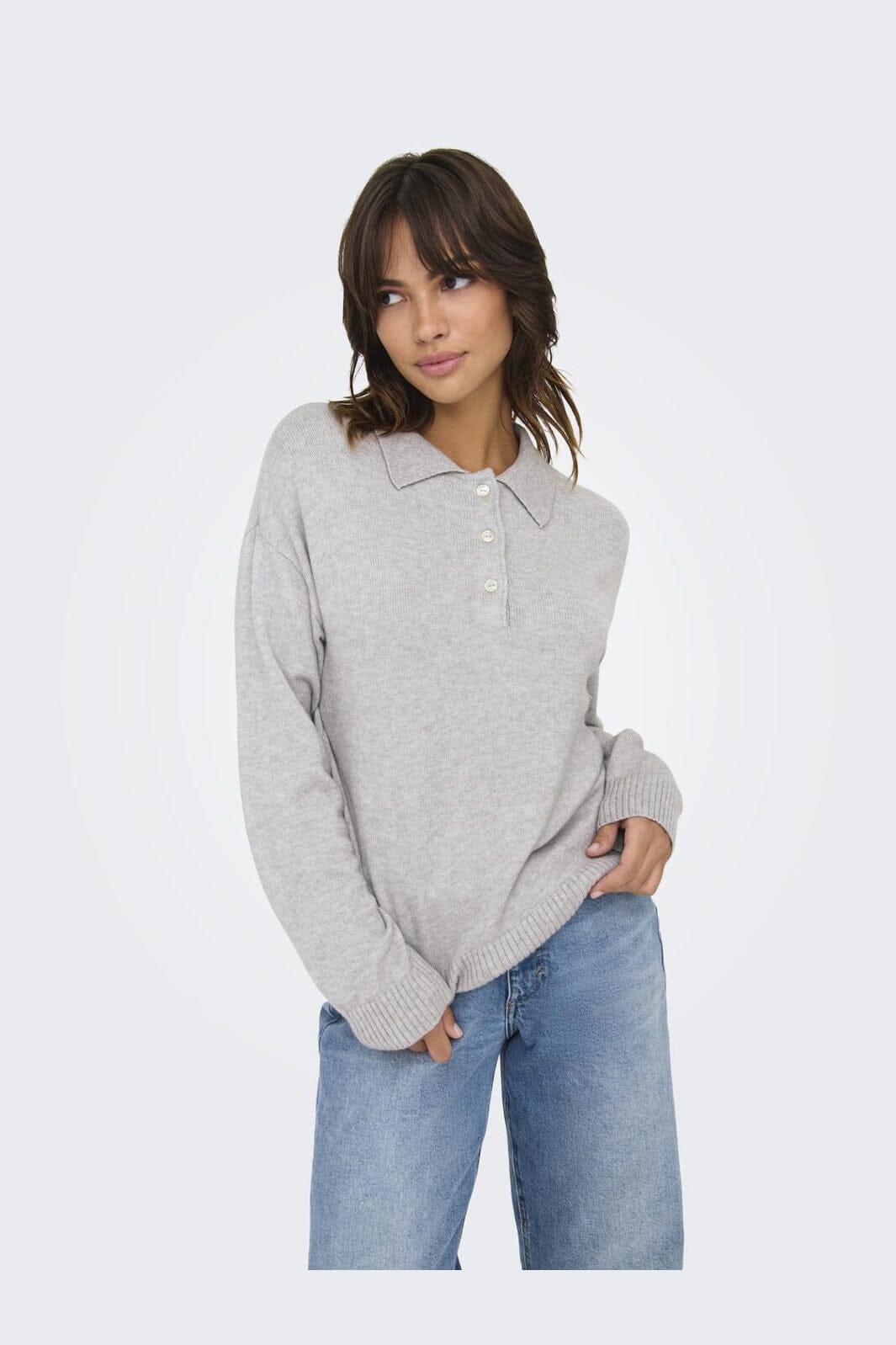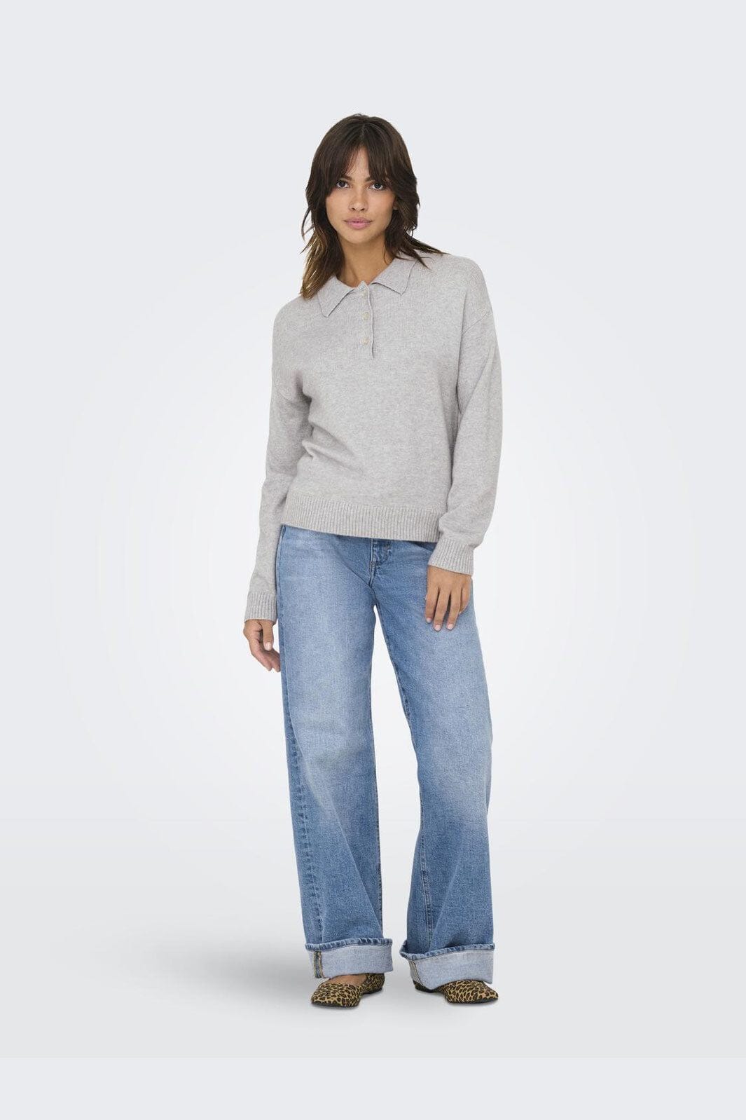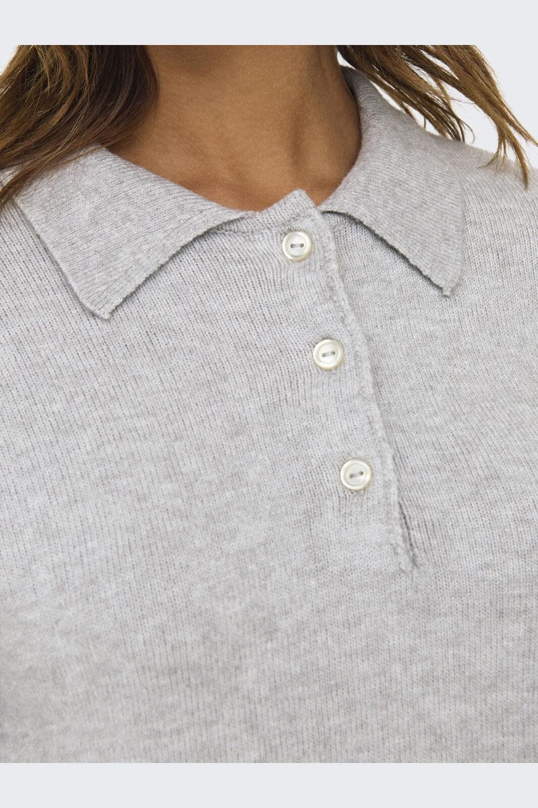 Only Onllana Polo Ls Pullover Knt Kolor: 4845166 Light Grey Melange
