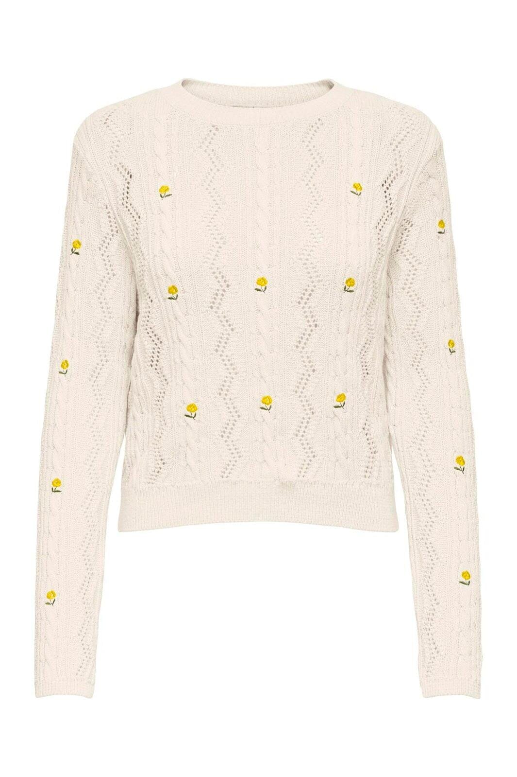 Only Onlrita Life Ls Embr Cable Knt Kolor: 4862605 Ecru Yellow Flower