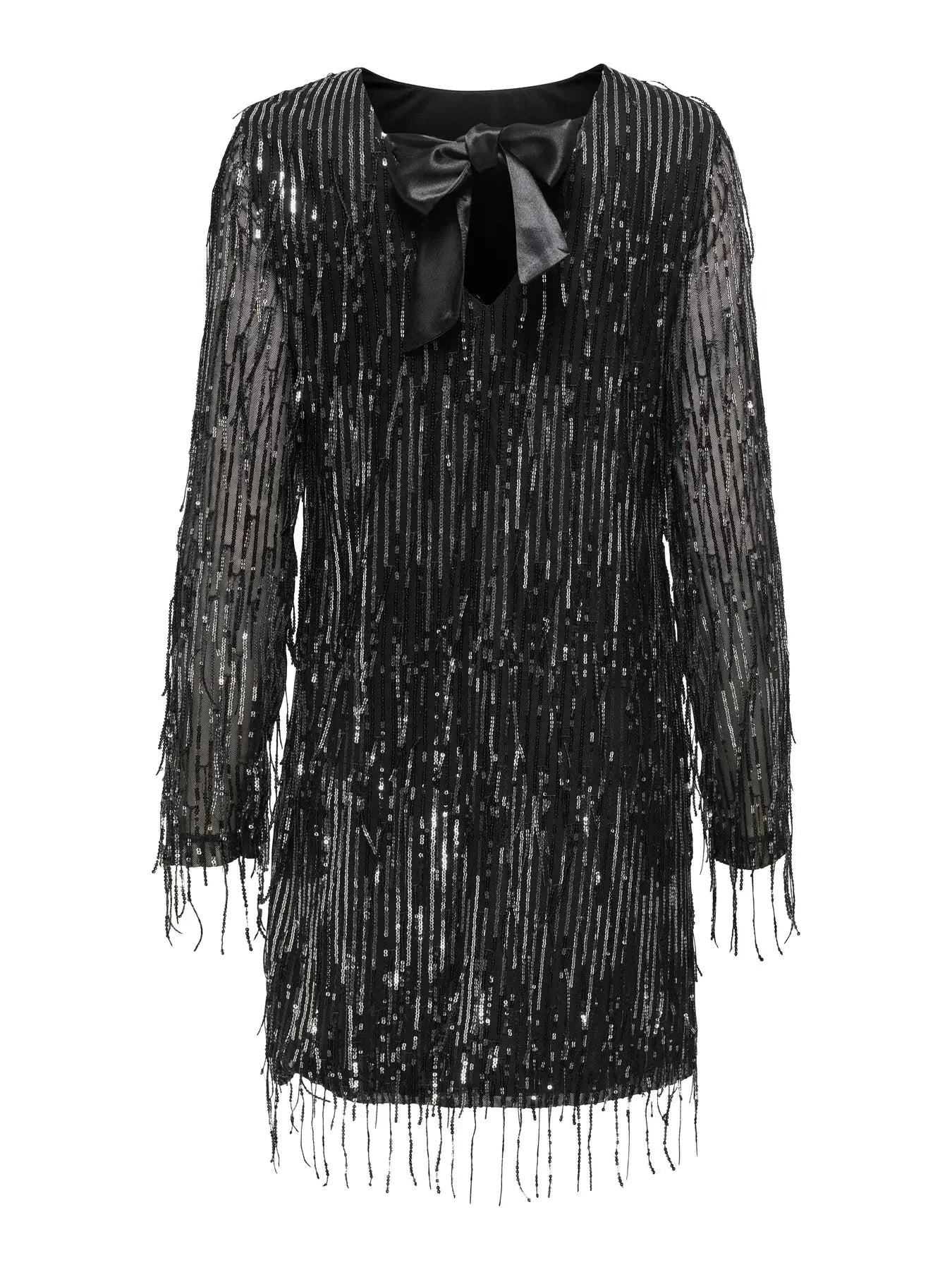 Only Onlspacy Ls Sequins Bow Dress Kolor: 4877201 Black W. Silver Sequins