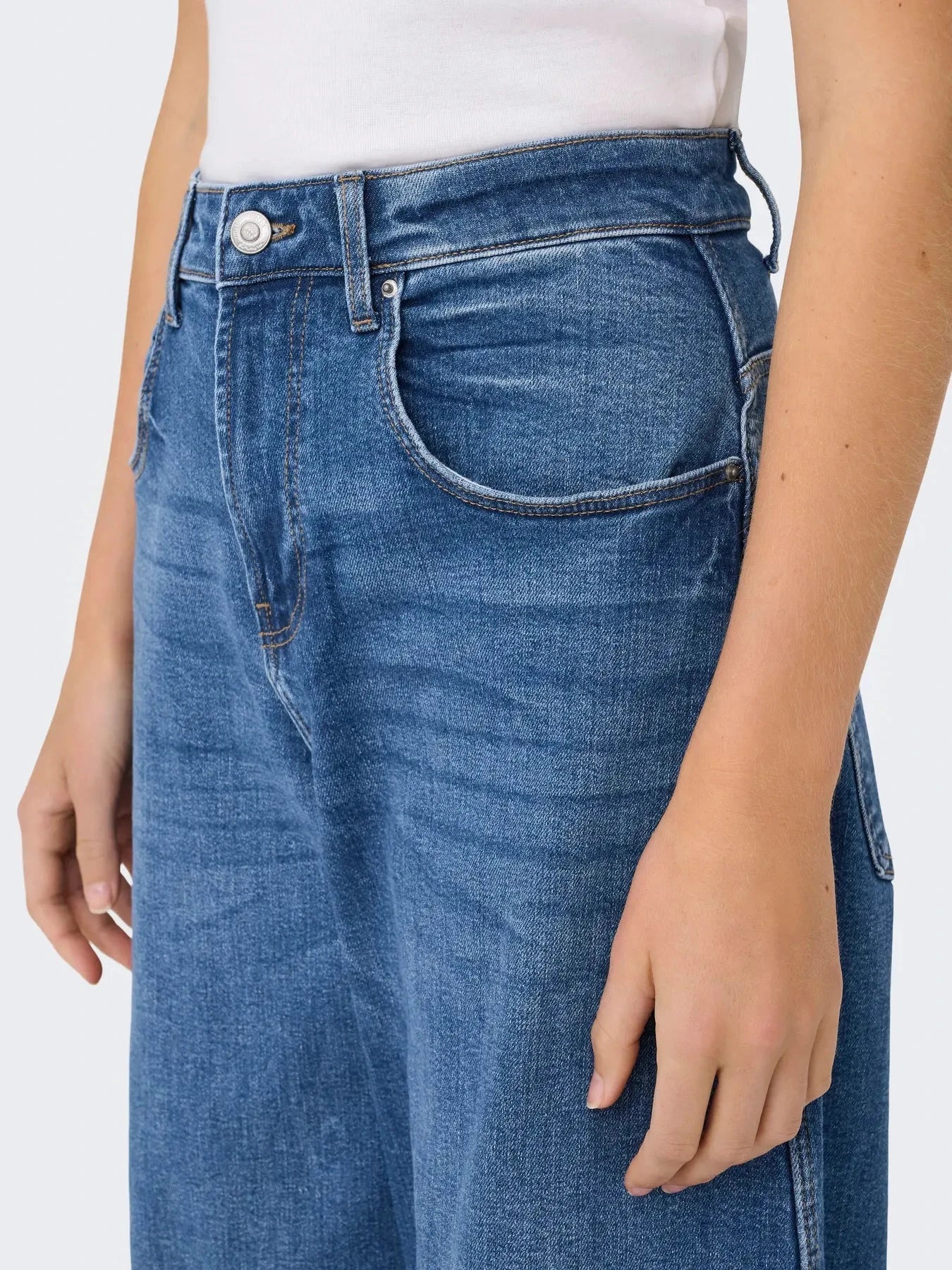Dżinsy Only z denimu w średnim odcieniu niebieskiego. Dżinsy mają krój barrel-fit z wysokim stanem i są wykonane z miękkiego, elastycznego materiału.