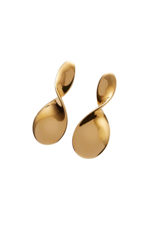 Pierścionek od Pernille Corydon z pozłacaniem. Projekt jest falisty i zakrzywiony, z gładką i lśniącą powierzchnią w złotym kolorze.