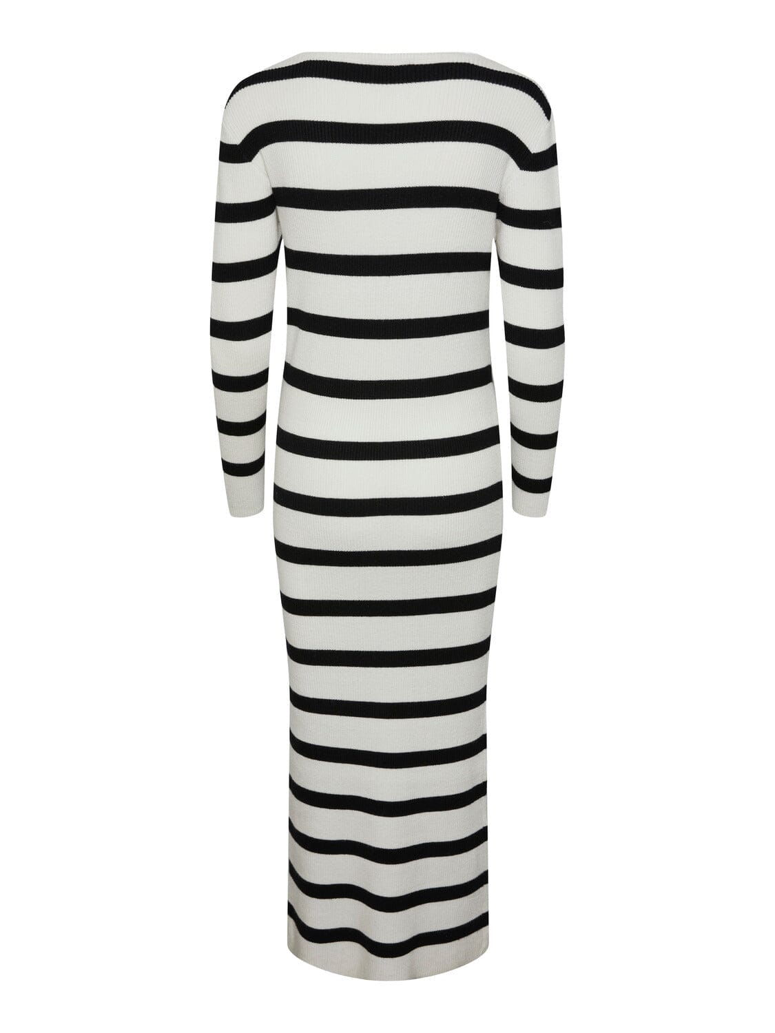 Stripowana sukienka dzianinowa od Pieces w czerni i bieli. Sukienka ma długość do kostek z rozcięciem i jest wykonana z miękkiej mieszanki dzianiny z dekoltem w serek i długimi rękawami.