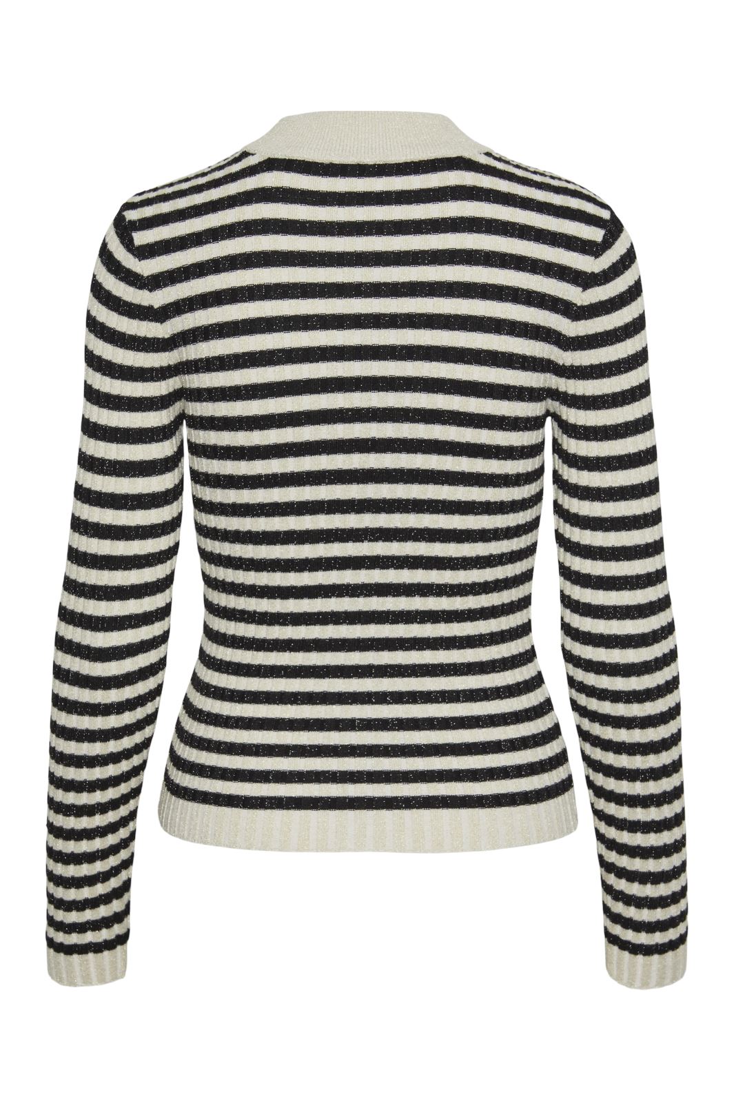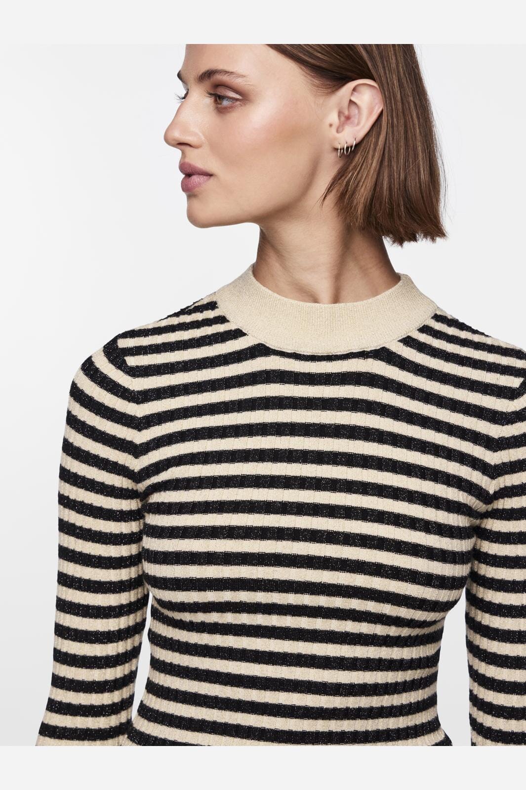 Pieces Pccrista Ls Lurex O-Neck Knit Mm Kolor: 4546398 Birch Black Stripes / Gold Lurex